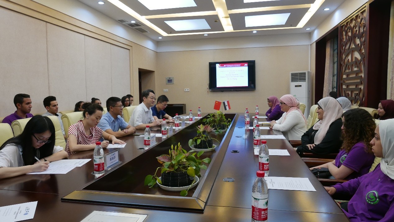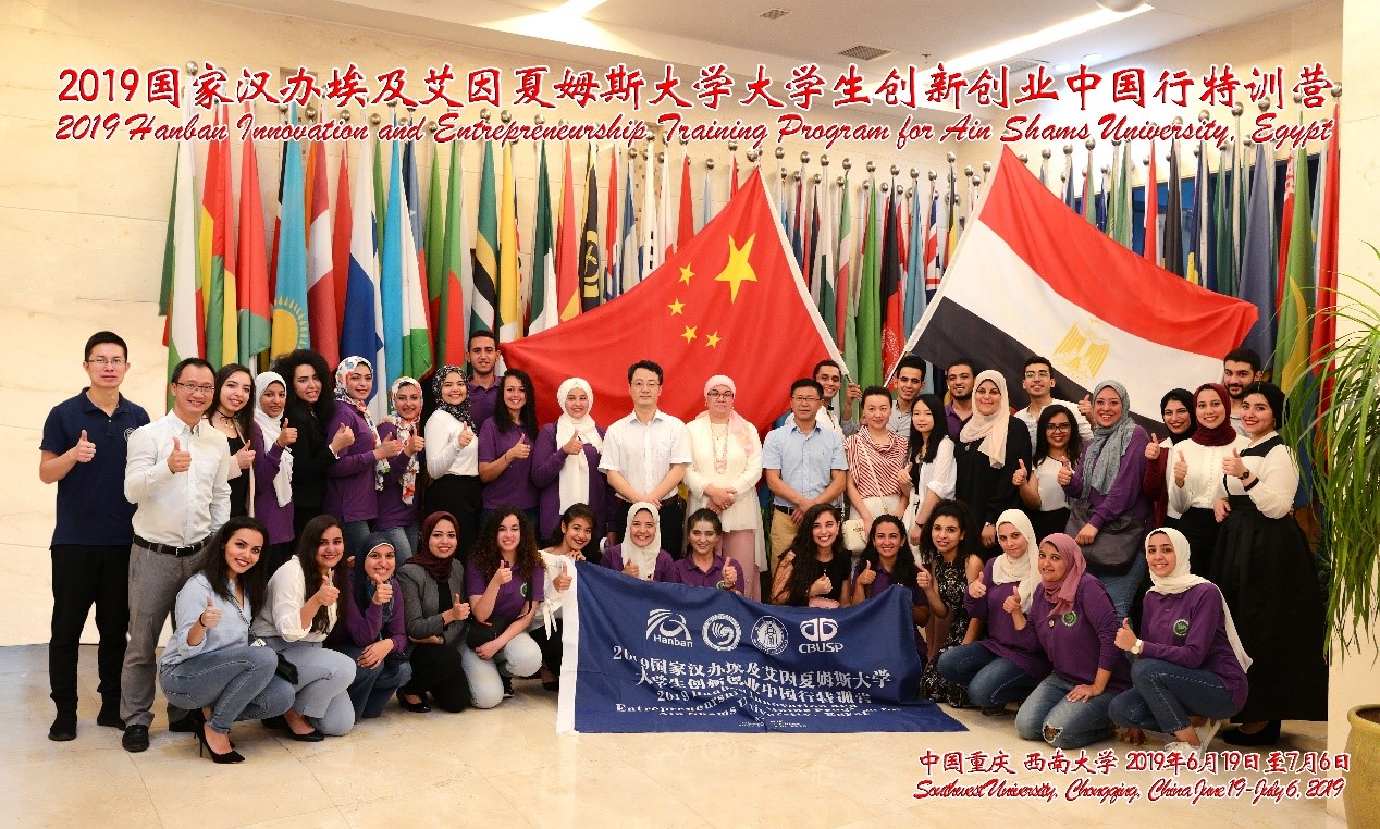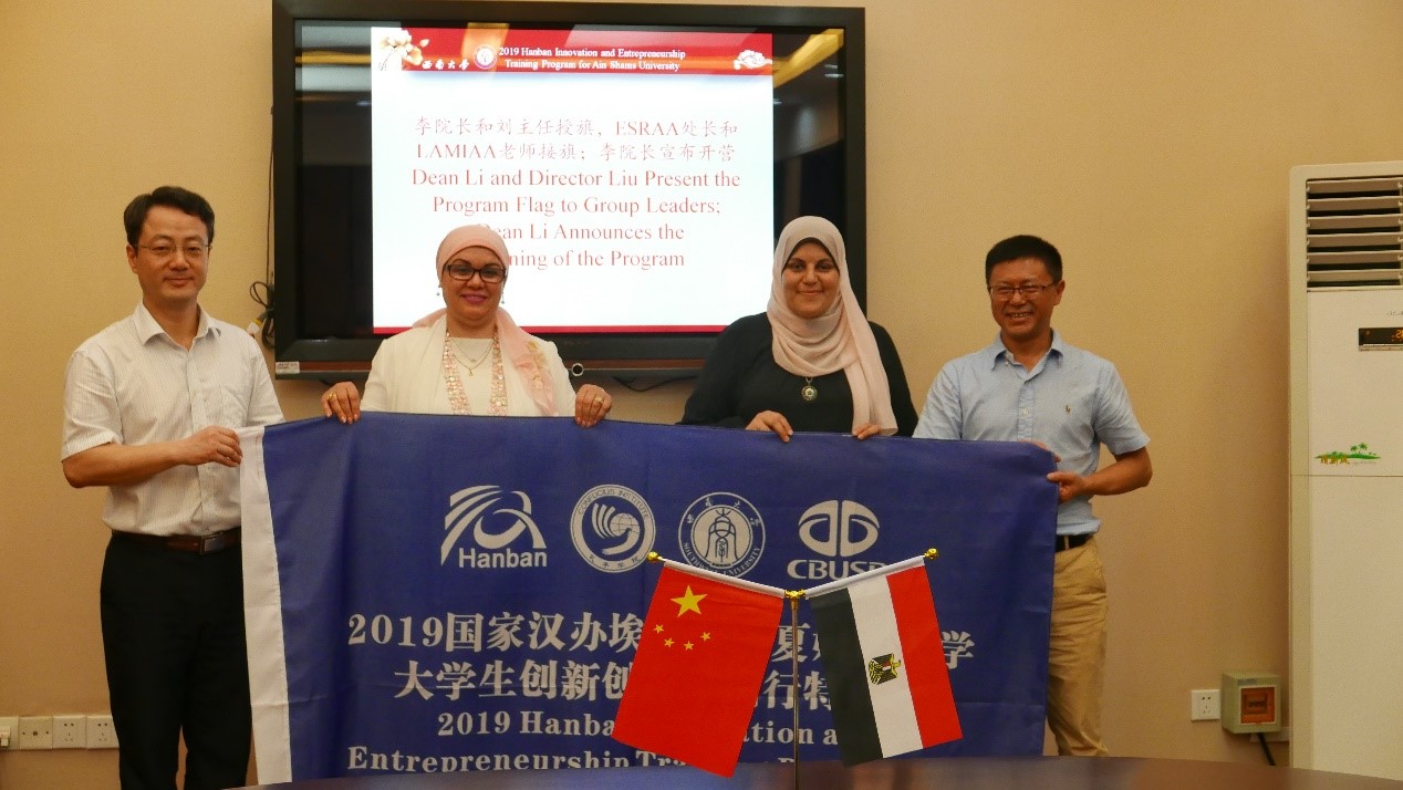 6月22日上午9:00,学院在紫云楼一楼签约室隆重举行“2019国家汉办埃及艾因夏姆斯大学大学生创新创业中国行特训营”开营仪式。
