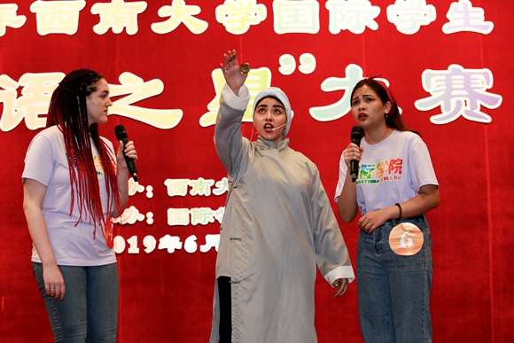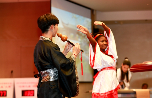 三位留学生进行才艺比拼。特约通讯员 秦廷富 摄