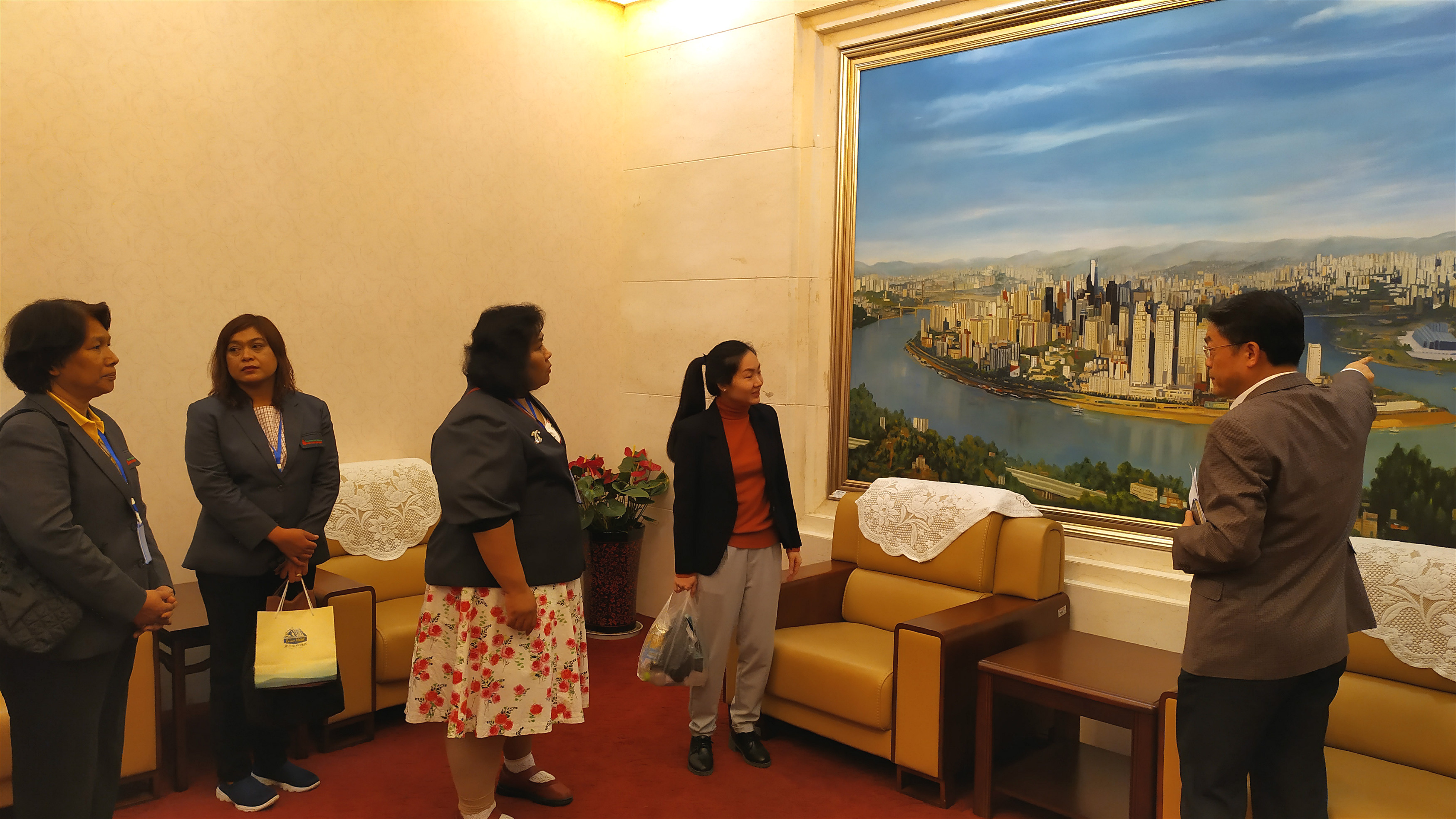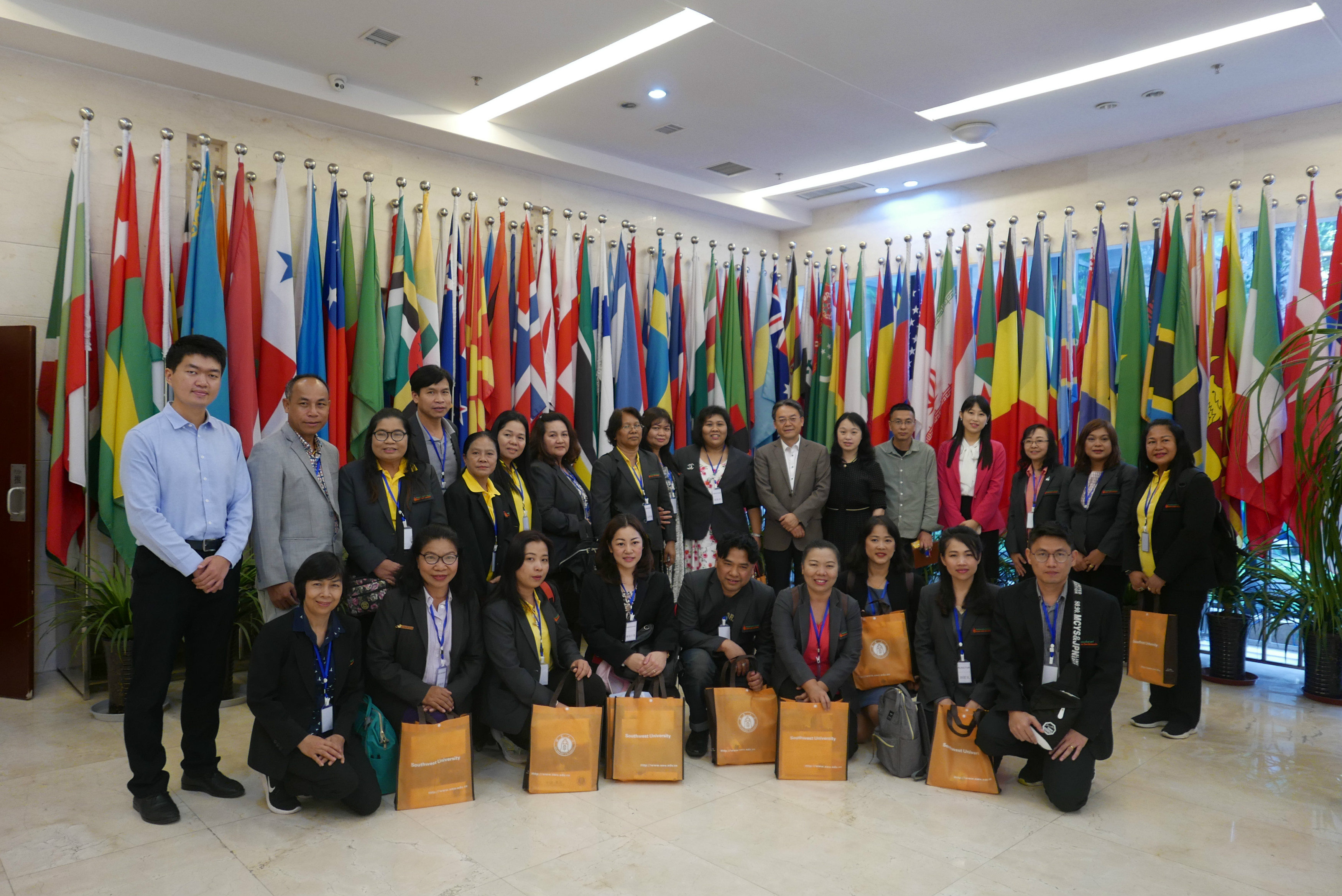 首先,代表团分成三组分别在刘猛书记、陈雨曦、杨昆的带领下参观了伟的国际1946bv教学、生活、办公等硬件设施。泰方人员对国际学生的优良学习生活环境给予了高度评价,并对泰国文化教室、留学生会办公室、中华才艺体验教室等特色场所表现了浓厚兴趣。