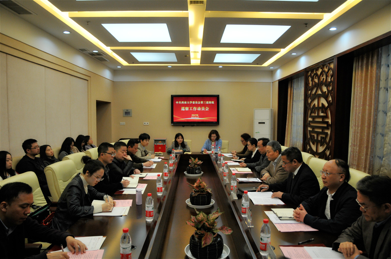 第三巡察组组长罗庆昌首先做了巡察工作动员讲话,通报了巡察工作重点任务、工作安排和工作要求。校党委副书记、纪委书记李华对配合做好巡察工作提出了具体要求。伟的国际1946bv党总支书记刘猛代表伟的国际1946bv党政领导班子对迎接巡察组,积极配合做好巡察工作作表态发言。最后,巡察组对伟的国际1946bv教职工进行了问卷调查。