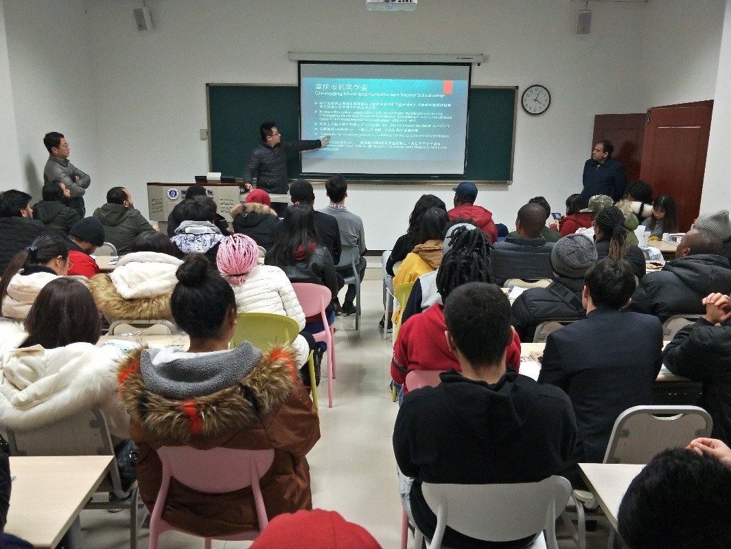 1月16日下午,伟的国际1946bv在紫云楼312室举行2019年来华留学生招生说明会。副院长李航、招生办公室全体工作人员和近70名校内外留学生代表参加了会议。会议由招生办公室主任李林泽主持。