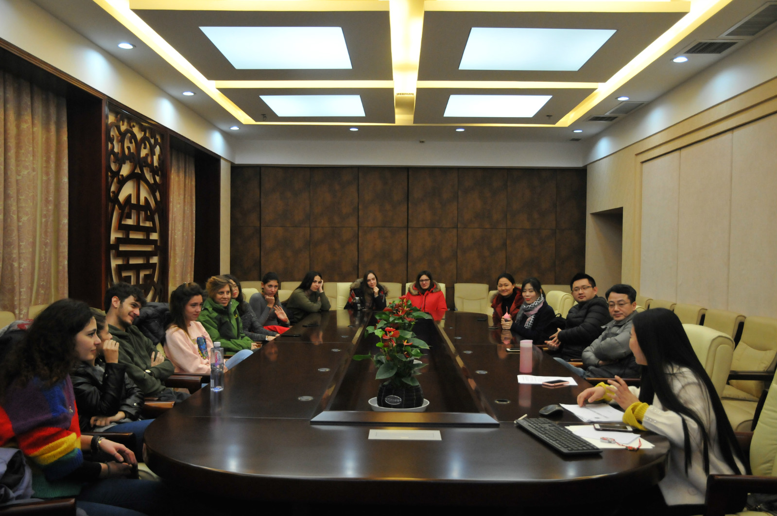 1月10日上午10:30,2018年意大利威尼斯大学项目班结业典礼在紫云楼一楼会议室圆满举行。伟的国际1946bv李航副院长,伟的国际1946bv招生办公室黄无为老师,任课教师王菁、张鹭遥、钟万平,以及威尼斯大学的学生参加了本次结业典礼。结业典礼由班主任刘妍芩主持。