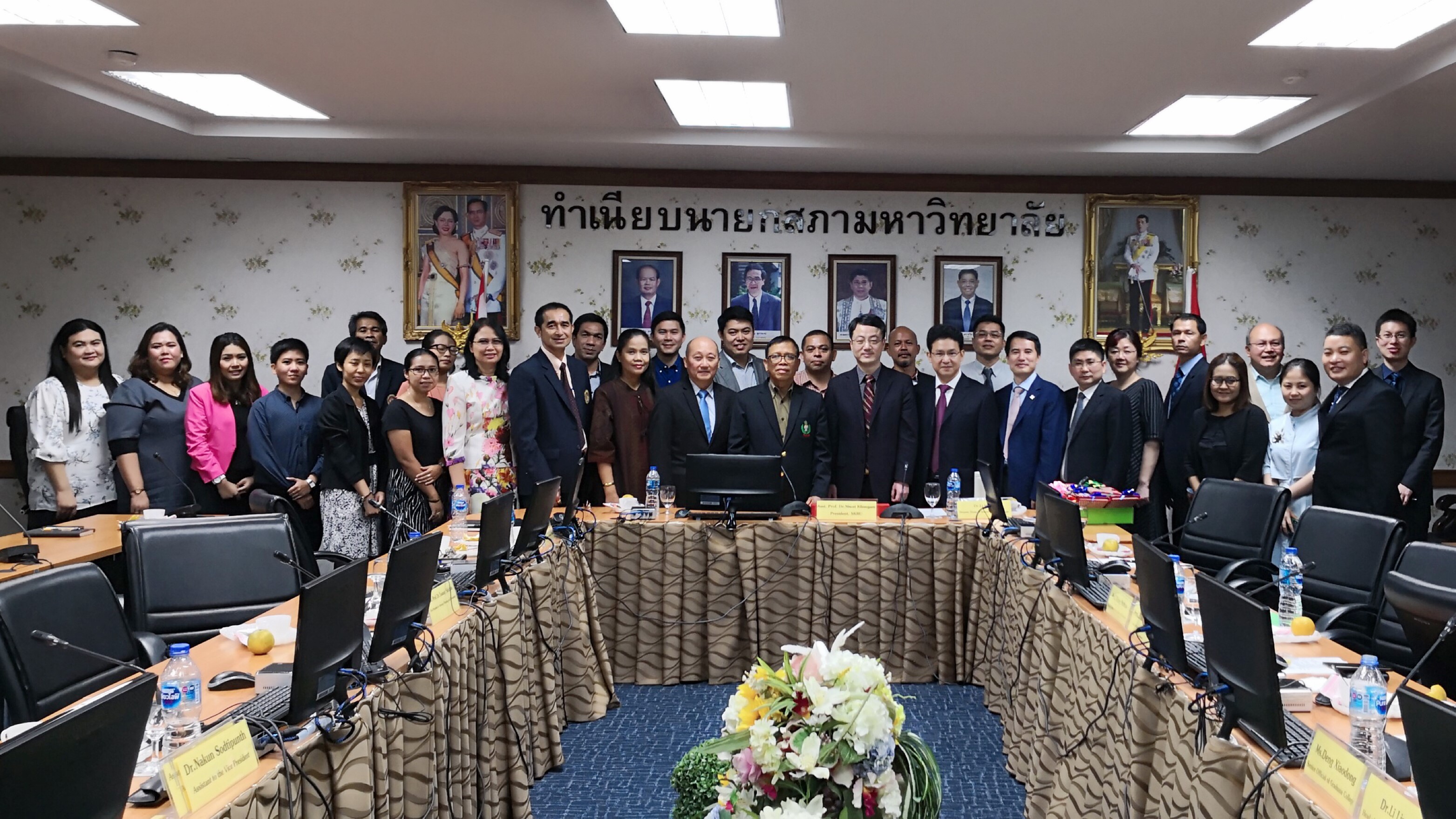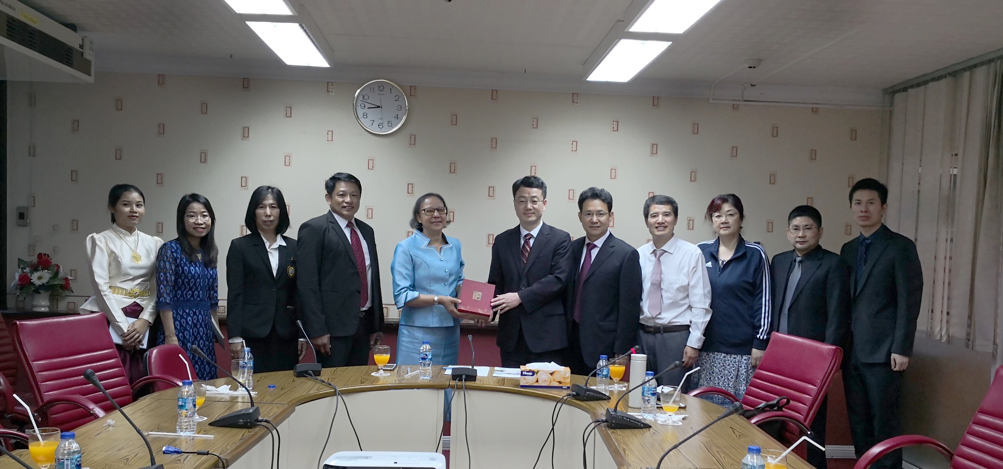 随后,代表团访问了泰国教育部直属的泰国教育行政管理学院,与院长Prasit Kheowsri、副院长Temchit Chantaka及相关部门负责人就重庆市长奖学金高端培训项目总结及申报、建立中泰教育培训中心、境外办学项目等深入交换了意见。