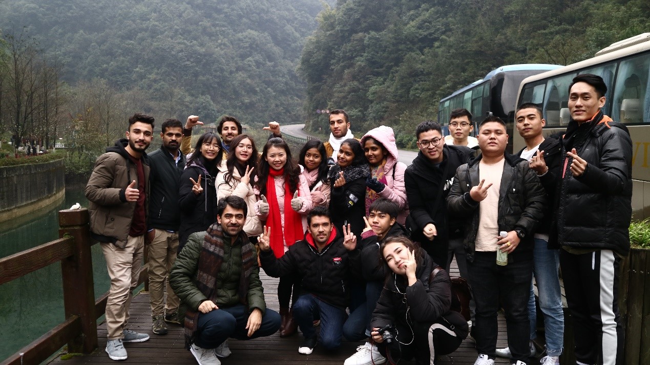 为了增进班级凝聚力、丰富国际学生课余生活,体验多样中国文化。12月22日2016级汉语言文学本科1班和2018年CIS一学期1班启程前往金佛山和贵州茅台镇开展了“畅游碧潭幽谷,感知国酒文化”的班级活动,来自越南、斯里兰卡、巴基斯坦、哈萨克斯坦、泰国的5个国家20余名留学生参加了此次文化之旅。