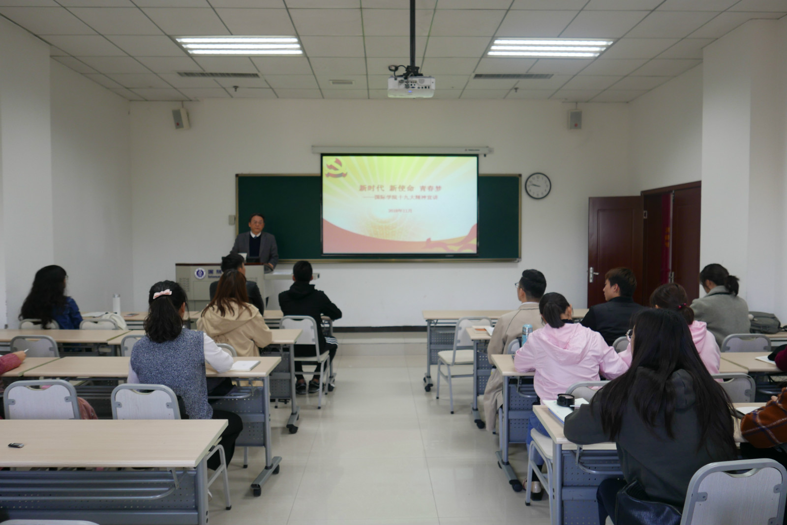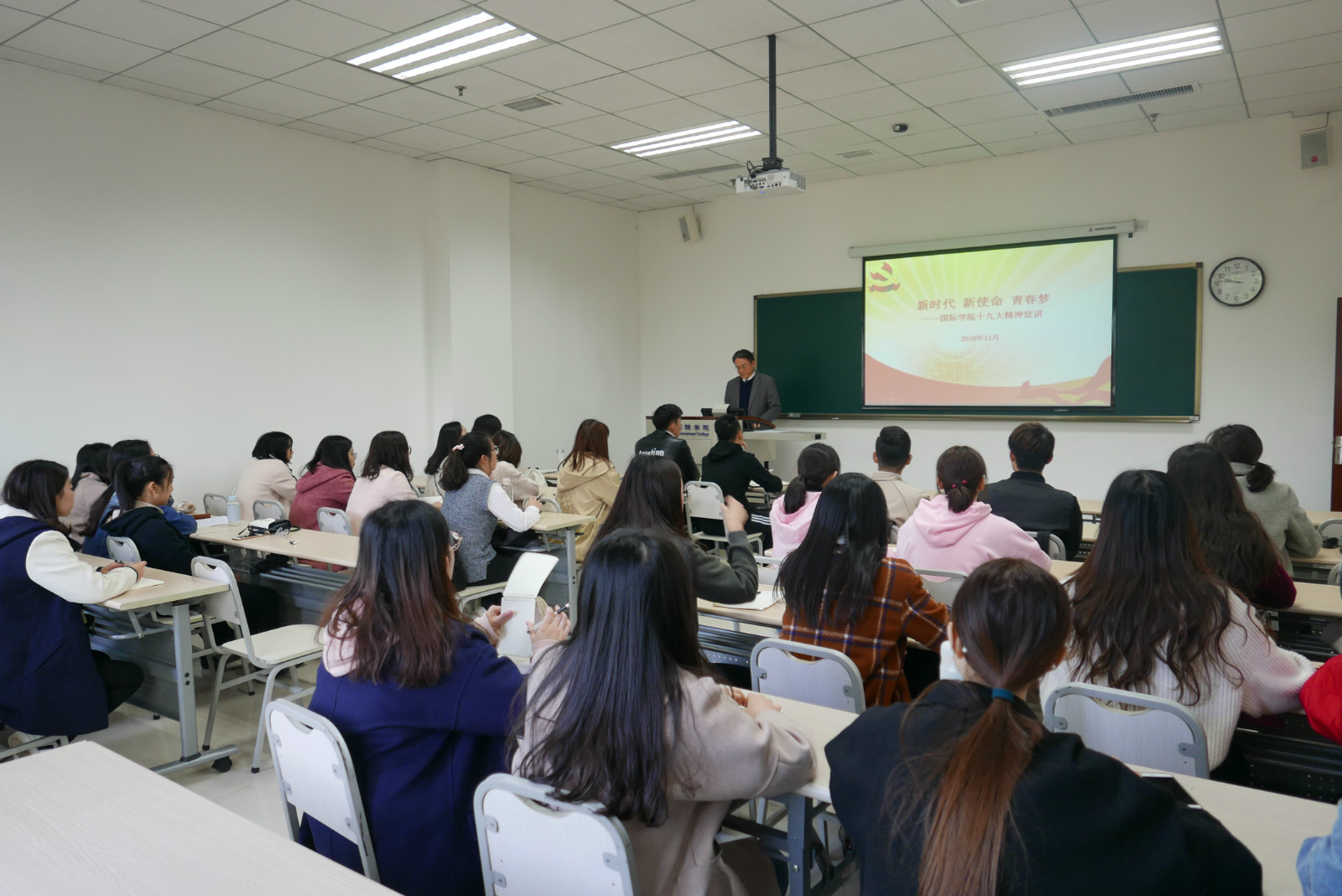 2018年11月8日14时45分,伟的国际1946bv党总支书记刘猛围绕“十九大精神”这一主题,在紫云楼312教室为2018级汉语国际教育专业中国研究生上了一堂生动的党课。