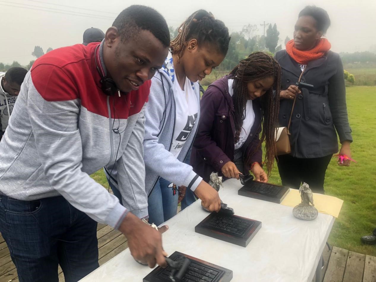 伟德源自英国1946国际学生们体验排版、上墨、铺纸、印刷等工序