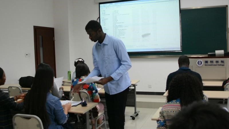 2015级汉语国际教育本科2班共有来自刚果布、印度尼西亚、墨西哥三国的5名同学在伟的国际1946bv进行了汉语教学实践,他们给37名中国学生、16名来自尼日利亚、泰国、越南、韩国、哈萨克斯坦等国的留学生上了5堂汉语课。“教师”们纷纷表示压力很大,但收获很多,有机会还会尝试。“学生”们则表示非常实用,教学相长,欢迎多举办一些此类活动。