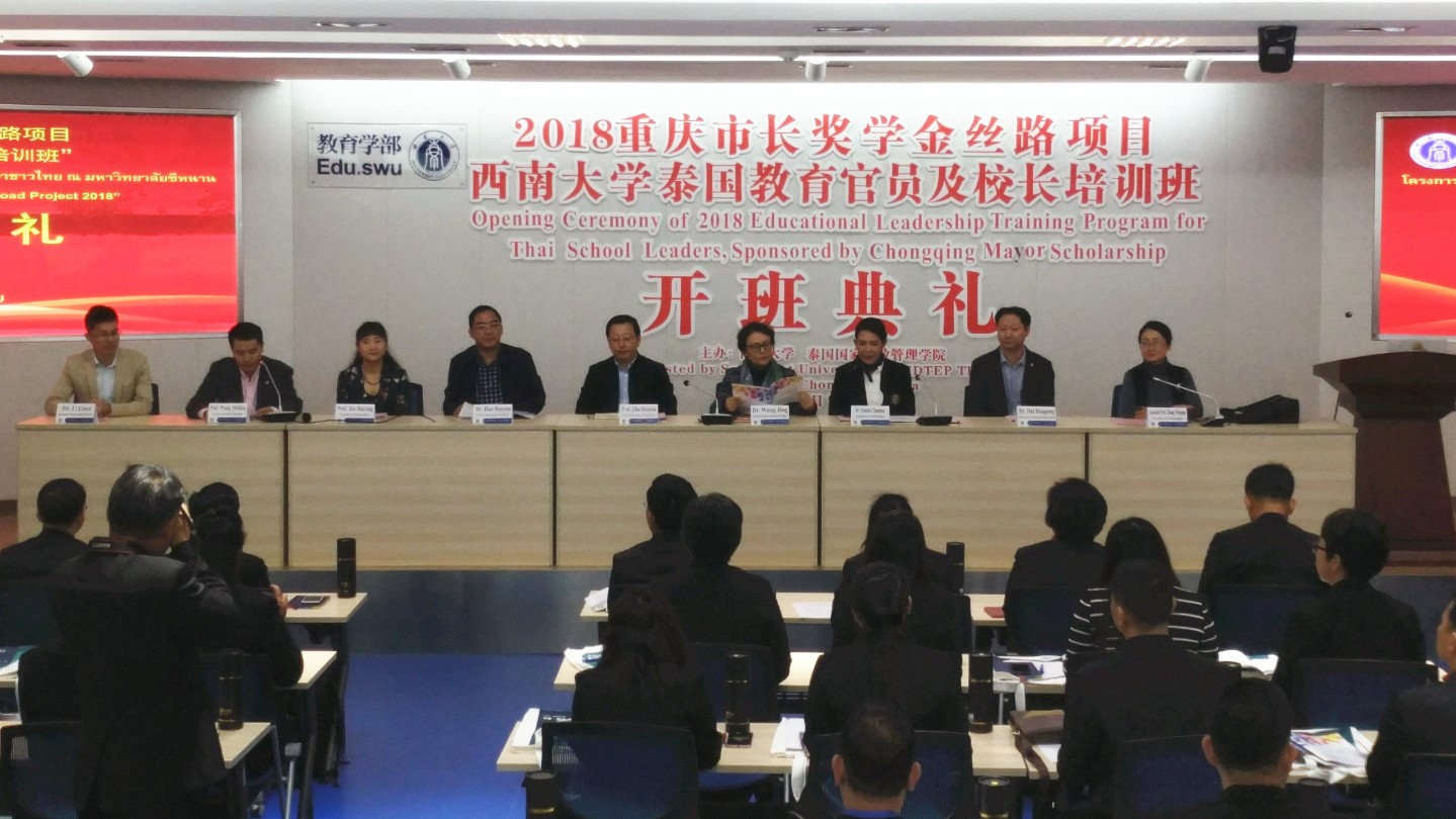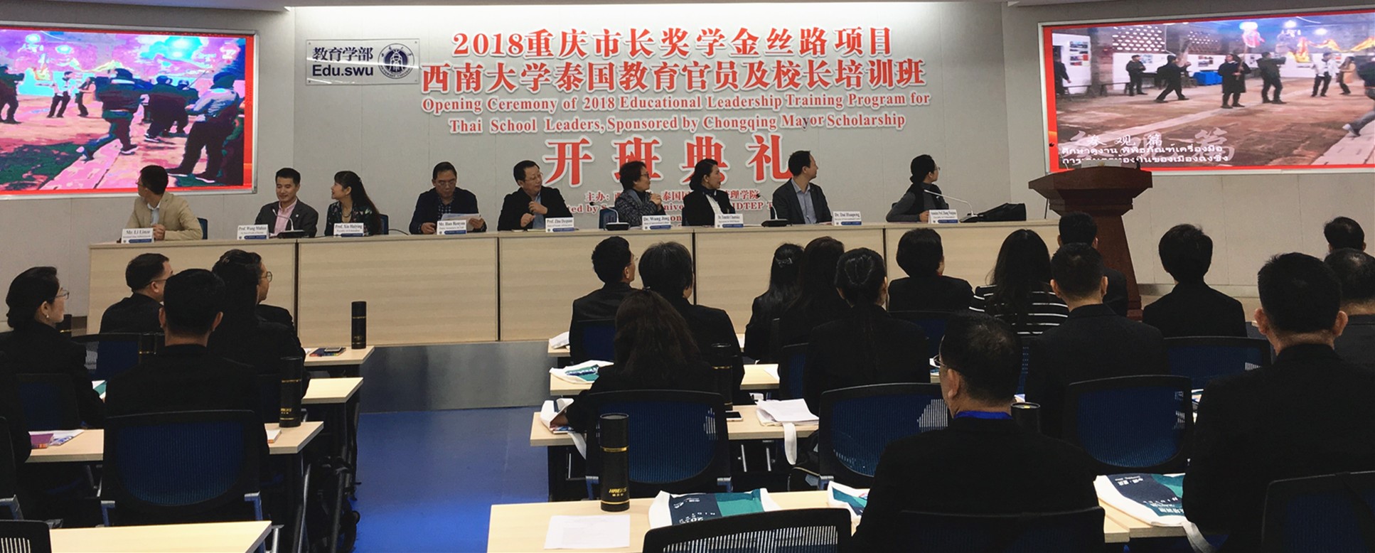 10月9日上午,2018重庆市长奖学金丝路项目“泰国教育官员及校长培训”开班典礼在教育学部举行。来自泰国的29名校长和3位教育官员以及相关负责人参加了本次开班典礼。典礼由教育学部王牧华副部长主持。伟的国际1946bv院长王静博士、伟德源自英国1946教育学部党委韩友仁书记、伟德源自英国1946教育学部部长朱德全教授、泰国教育部秘书长代表教育行政管理学院国际部部长Temchit Chantaka博士出席典礼并讲话。