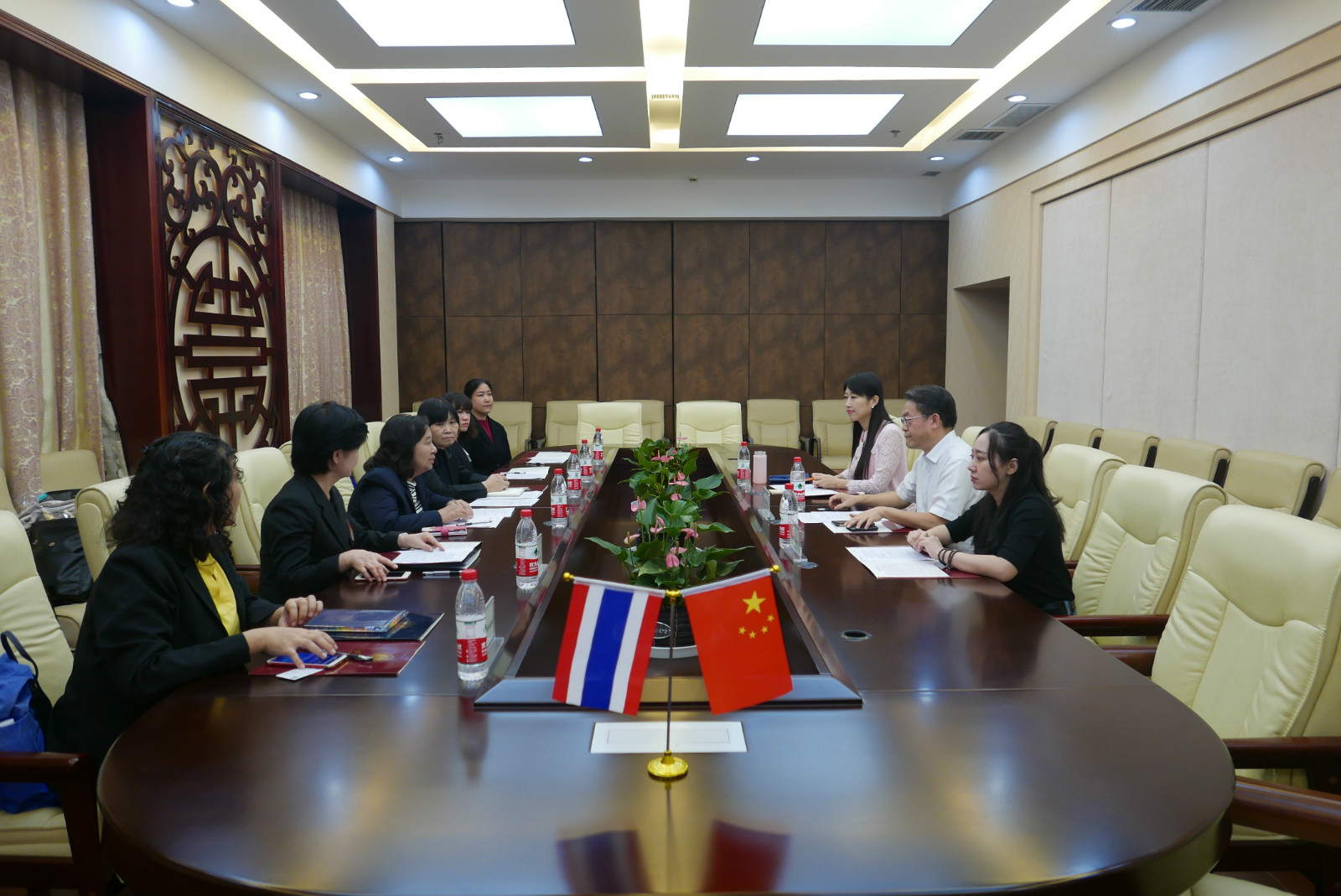 9月17日下午,泰国坦亚武里皇家理工大学人文学院院长拉谷迪女士一行6人访问我院,王静院长、刘猛书记、学工办主任陈雨曦接待了代表团一行。