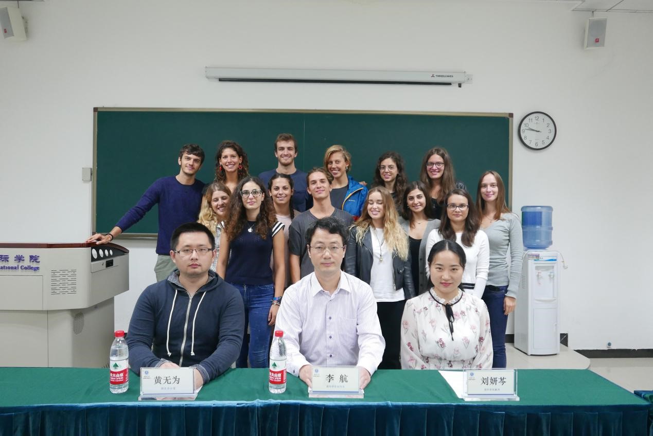 李航副院长向威尼斯大学的同学们表示热烈欢迎,并且详细介绍了该项目成立的过程,以及合作院校双方对该项目的重视。他还亲切的告诉同学们学习汉语不能仅仅是在课堂上,还应该利用课余时间,他鼓励大家走出校园,去跟更多的中国人交流,体验中华文化。