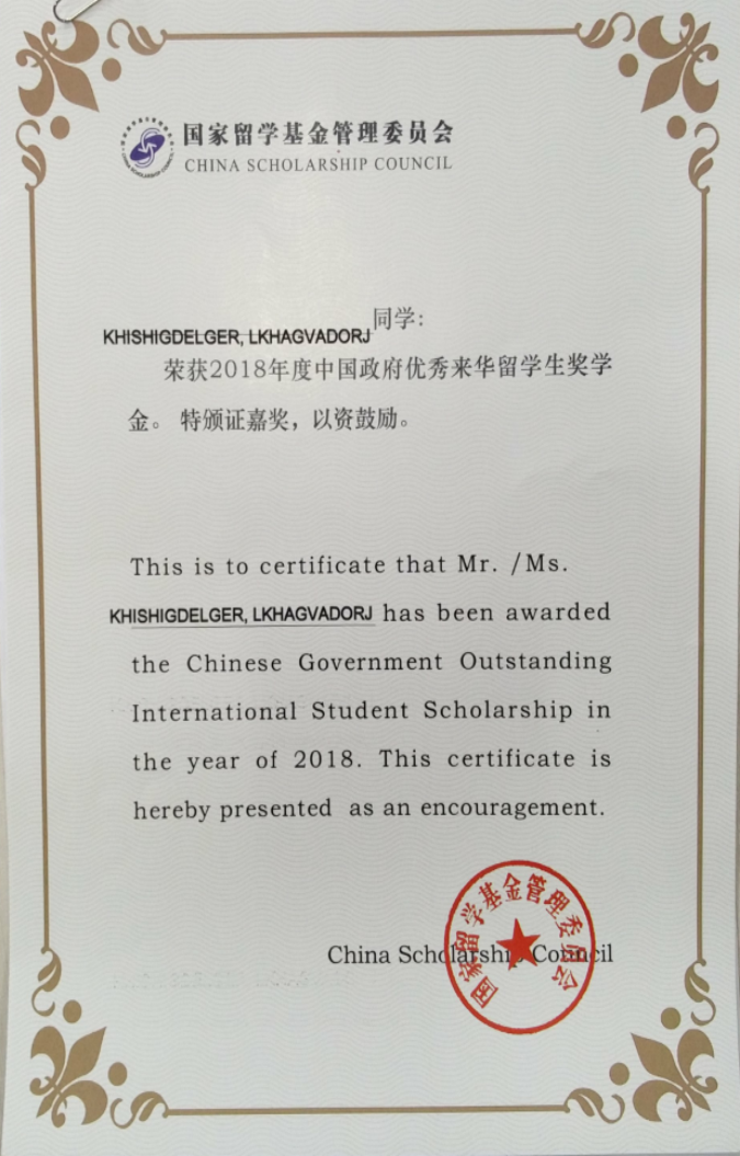 为扩大中国政府奖学金的辐射面和影响力,培养更多知华、友华的国际优秀人才,教育部针对在华留学生设立了“中国政府来华留学生奖学金”。学校蒙古学生贺西格、刚果(布)学生思拉河分别凭借“2016年汉语桥全球外国人汉语大会”知识会单项奖和“2017年汉语桥全球外国人汉语大会”团体二等奖等优异表现,从全国600余所高校的众多申请者中脱颖而出,最终通过“中国政府优秀来华留学生奖学金”(本科生类)开放名额的专家评审。此外,巴西学生桑洁丽、泰国学生孙玉玲、泰国学生肖媛媛等3名留学生作为学校定向名额的推荐人员,也被授予了“中国政府优秀来华留学生奖学金”。