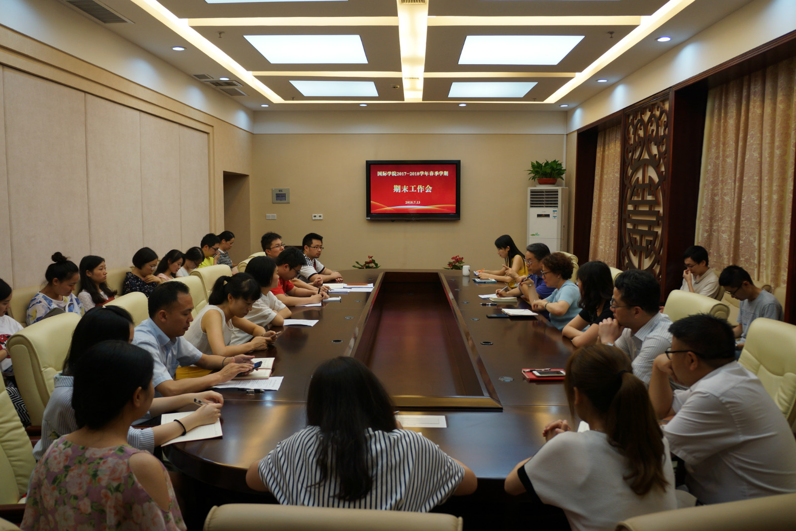 刘猛书记对本学期工作亮点做了强调,一是成功举办了十周年院庆,二是顺利通过了来华留学质量认证现场考察,三是获得了学校“十佳”网站称号。关于暑假和开学安排,他指出,全院上下要按照学校要求并结合学院实际,做好巡视整改工作、后勤保障工作、安全稳定工作和值班工作。