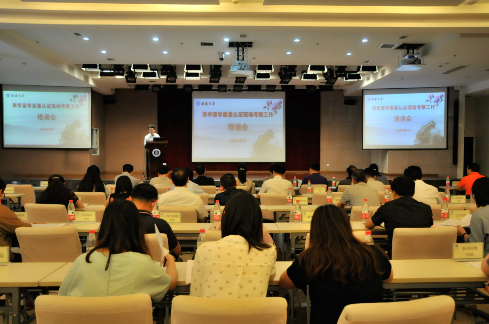 2018年6月5日学校来华留学质量认证现场考察培训会在伟的国际1946bv学术报告厅举行,相关职能部门、直附属单位、企业单位和国际学生培养单位负责人、导师代表参加会议,会议由伟的国际1946bv李航副院长主持。