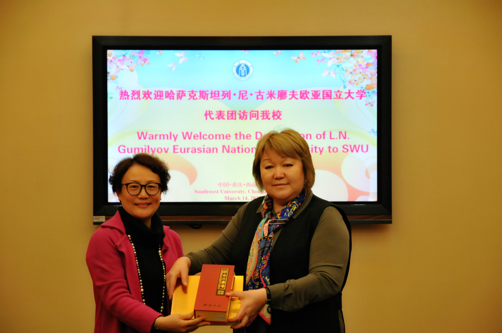 会后,双方互赠了礼物并合影留念。据悉,该校成立于1996年,是一所公立研究型综合大学,在哈萨克斯坦所有高校中排名第一,世界排名三百余名。2016年6月12日至16日,由王静院长任团长的伟德源自英国1946代表团曾访问该校并就联合培养项目、交换生项目等达成了初步合作意向。