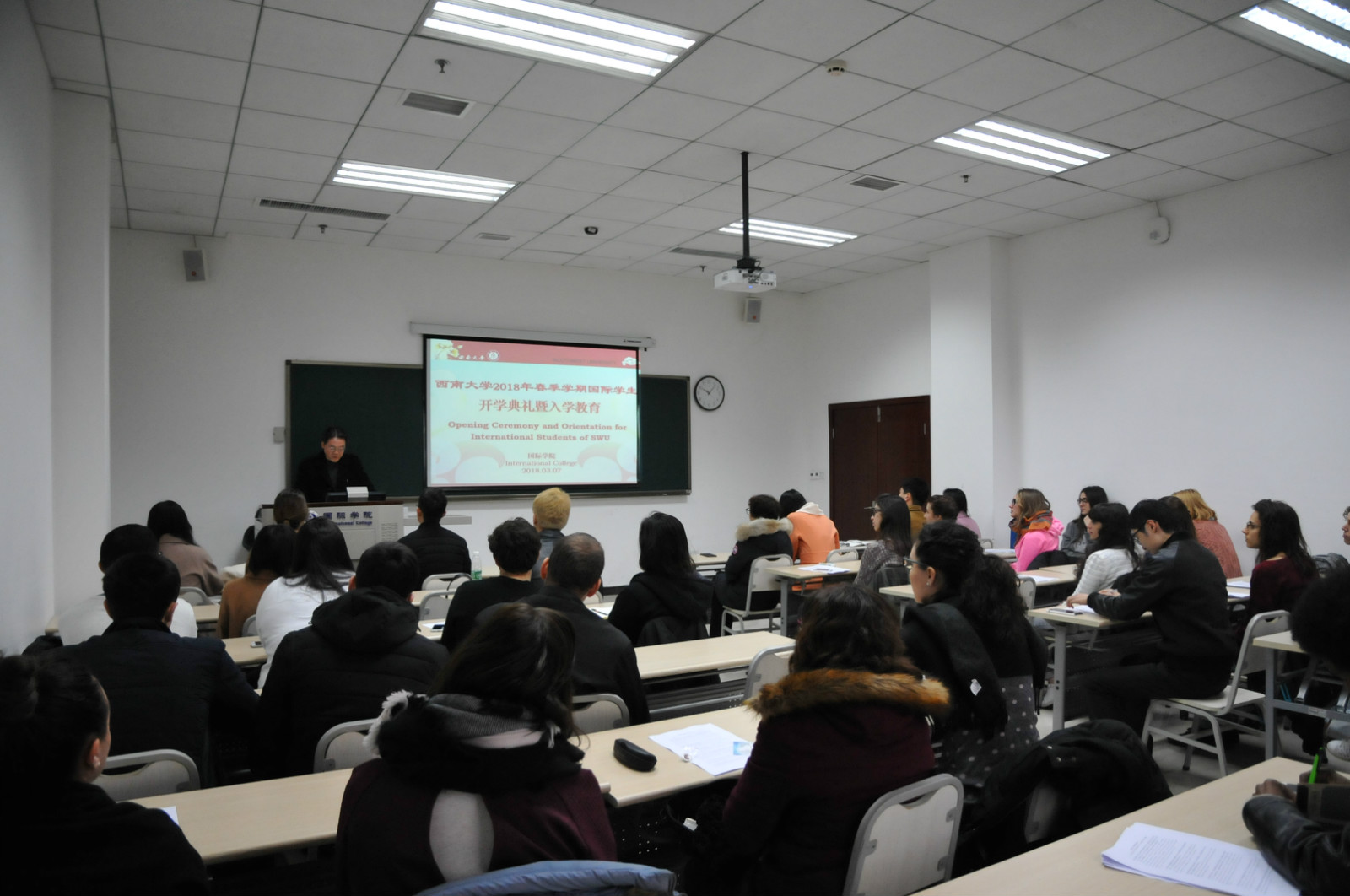 2018年3月7日上午,来自7个国家的29名新生在伟的国际1946bv312室举行开学典礼暨入学教育,刘猛书记,王静院长,以及各科室负责人参加本次典礼。