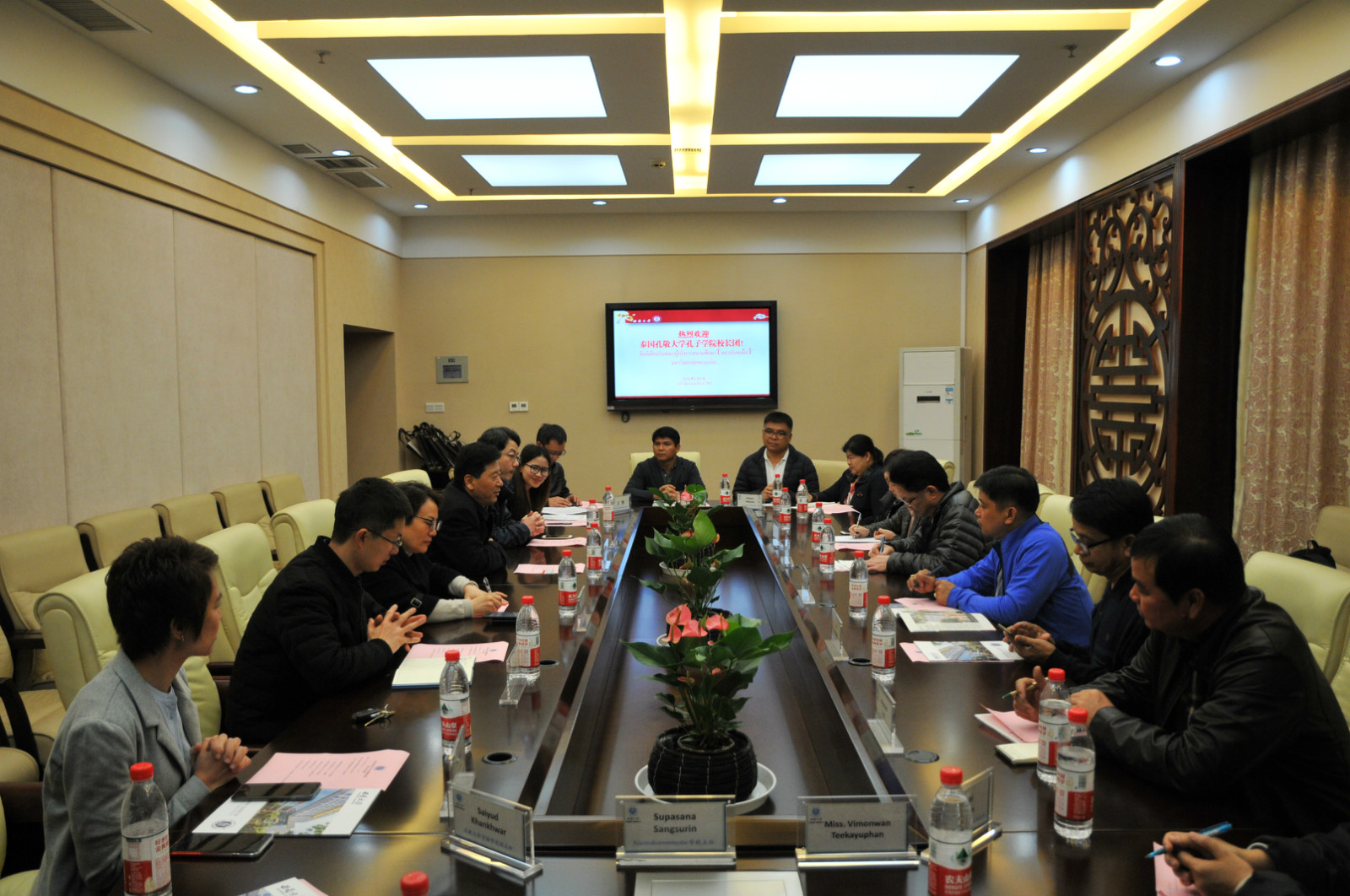 靳校长亲切会见泰国客人们并简要介绍重庆和我校情况。他说,适逢我校与孔敬大学合作12周年暨孔敬大学理事会在我校召开,对大家的到来表示由衷的高兴和热烈的欢迎。