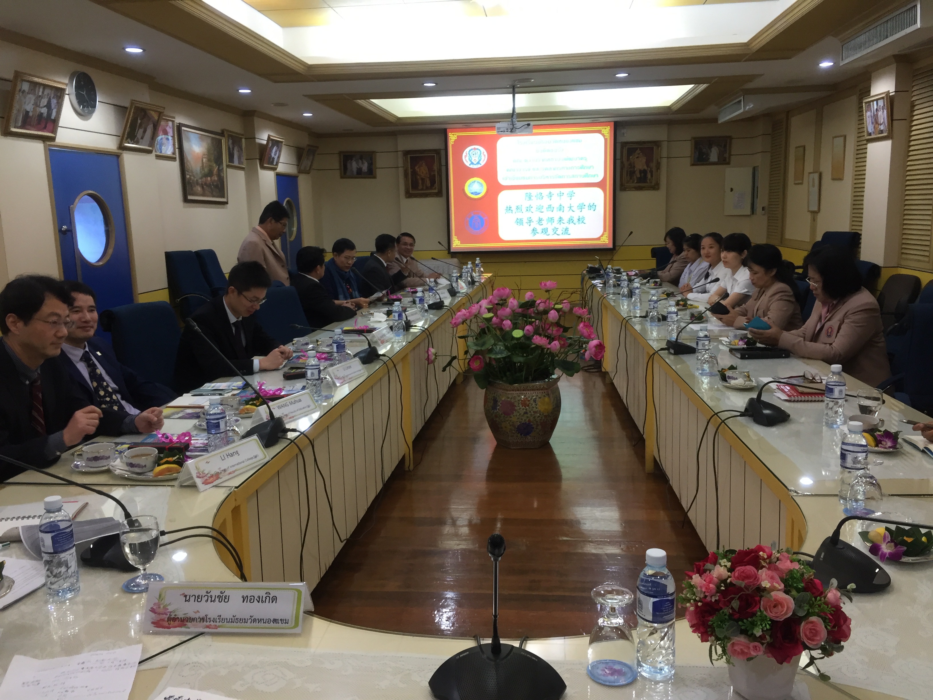 访问泰国教育部期间,次长Chaiyosh ImSuwan先生和基础教育司顾问Suchitra Pattanaphum女士会见学校代表团,高度赞扬此次泰国教育官员及校长培训工作,并表示愿以此为契机,在教育官员及师资的交流与培训方面与学校建立长期的合作关系。此外,学校代表团还访问了泰国国家教育行政管理学院,与院长Prasit Kheowsri博士、副院长Temchit Chantaka博士、以及各处室负责人进行了友好会谈。双方回顾和总结了2017年丝路项目的开展情况,对2018年项目的合作申请进行了磋商。双方还就定期组织泰国教育官员及校长考察与学习团组赴重庆、在学校建立“中泰教育中心”等进行了深入洽谈。