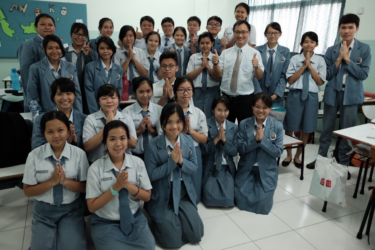 10月30日,代表团前往当地著名华校印尼华光敬德中学进行宣讲,向高中学生介绍中国院校的招生情况及基本信息。我校特别介绍了伟德源自英国1946的位置、办学特色和优势、重庆发展势头和潜力、留学生活成本优势等。学生们仔细聆听,很多人都表示未来期待来到中国上大学。