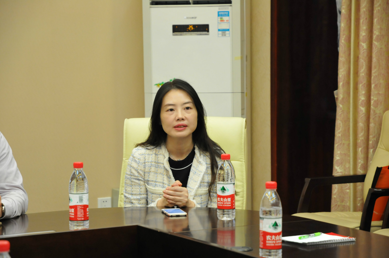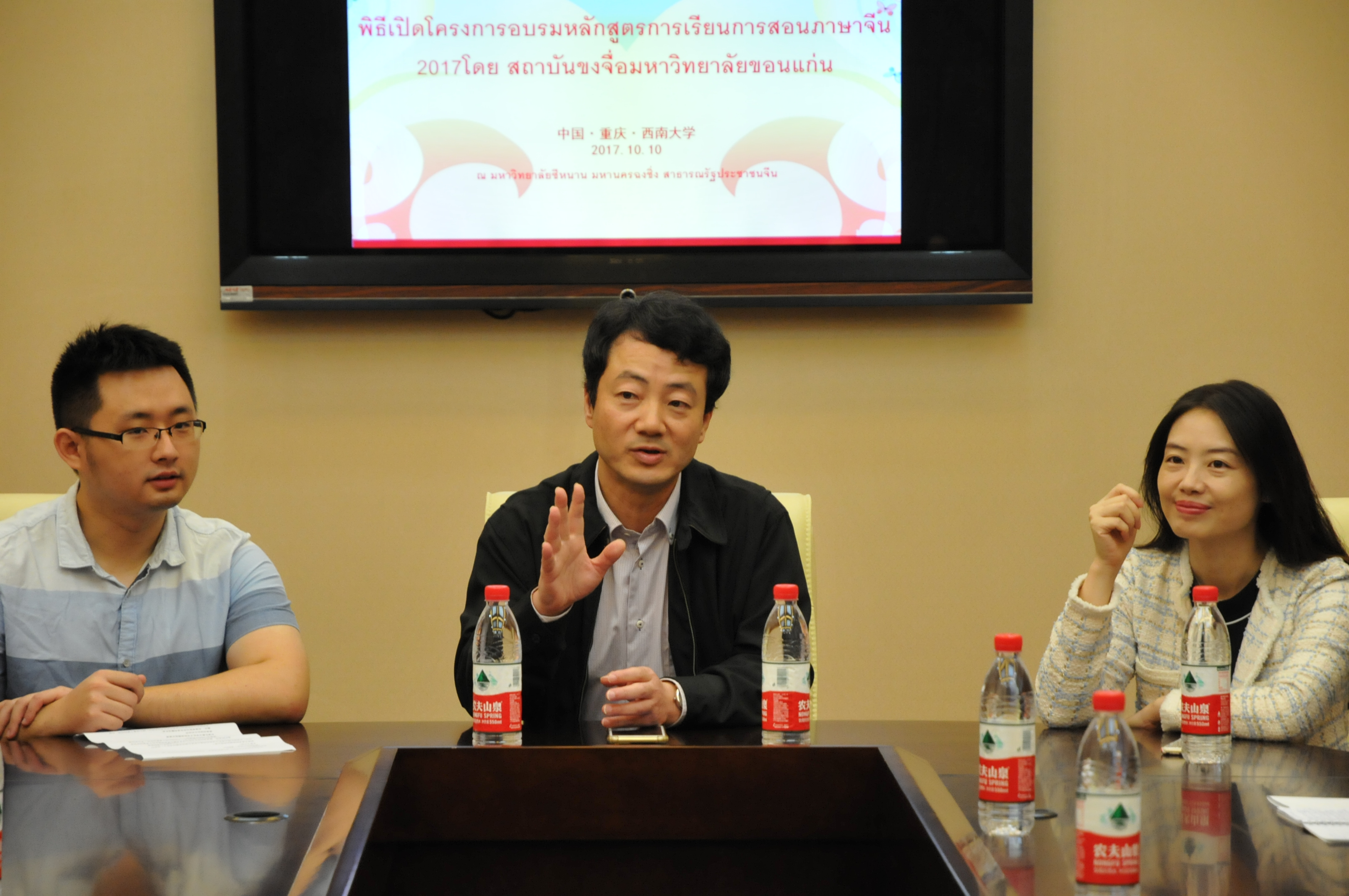 泰国孔敬大学孔子学院中方院长胡琳老师致感谢辞,她对伟的国际1946bv热情周到的接待表示感谢。胡院长详细地回顾了今年孔敬大学孔子学院在中文职业教育领域举办的培训活动,介绍了“高铁汉语培训项目”向“汉语+职业教育”发展的规划。
