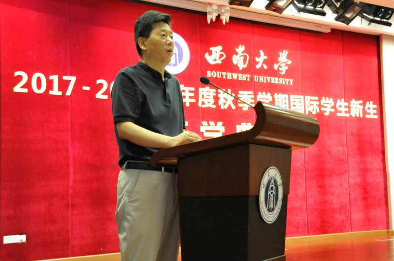 副校长靳玉乐代表学校致欢迎辞,并简要介绍学校独特的自然环境与人文资源及学校来华留学教育概况,希望同学们珍惜机会,早日学有所成。