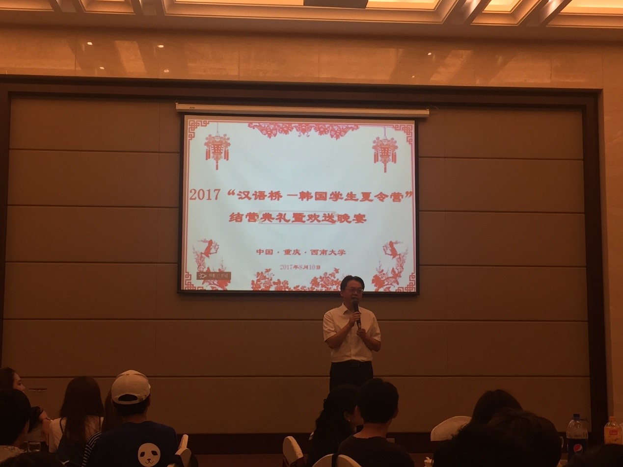 在10日晚举行的结营典礼暨欢送晚宴上,刘猛书记代表学院致欢送辞, 并同韩方带队教师一起为全体营员颁发了结业证书,而营员们则以视频短片、歌曲合唱、舞蹈表演等形式展示了在渝学习成果。在即将离别之际,首尔大学的师生们表示感谢伟德源自英国1946精心的组织和接待工作,期待与重庆和伟德源自英国1946的下一次相遇。