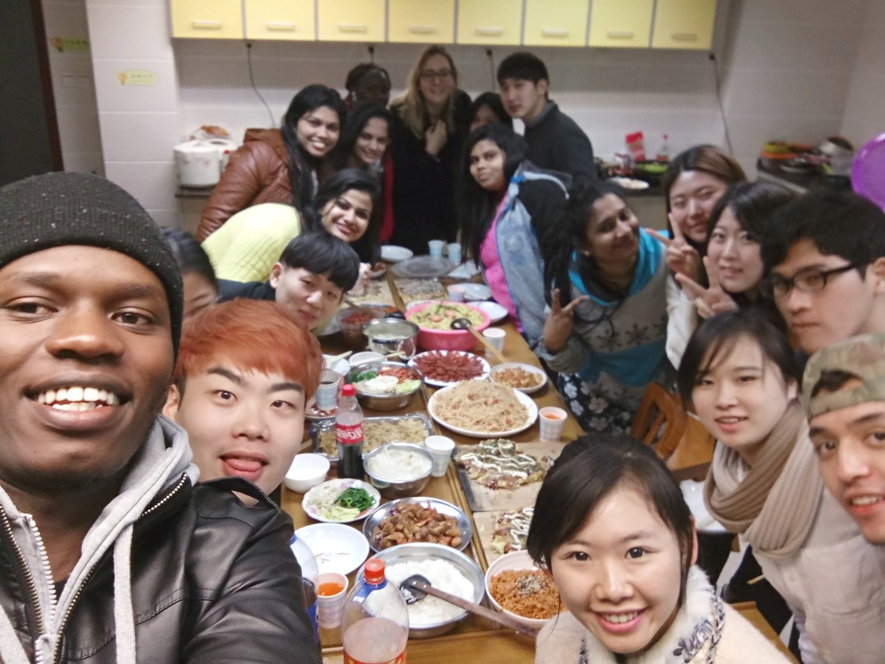 为欢送即将完成学业回国的初级2班学生,12月20日下午4点至晚上10点,初级2班在紫云楼七楼厨房开展了“同品异国菜,依依西大情——初级2班美食欢送会”的班级活动,来自韩国、日本、斯里兰卡、意大利、哈萨克斯坦、坦桑尼亚、几内亚比绍的7个国家近20名留学生参加了此次别开生面的班级活动。