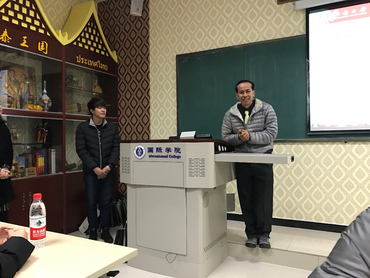 来自孔敬职业技术学校的副校长Mr. Surak Sutthiprapa应邀讲话,他对伟的国际1946bv热情的接待和周到的安排工作给予了肯定与赞许,对于学院先进的教学设施及干净、整洁的留学生学习与生活环境给予了高度评价。此外,他还介绍了孔敬职业技术学校汉语培训概况,相信营员们一定会学有所得,一定会满怀期望而来,开心愉快而归,并预祝此次冬令营圆满成功。