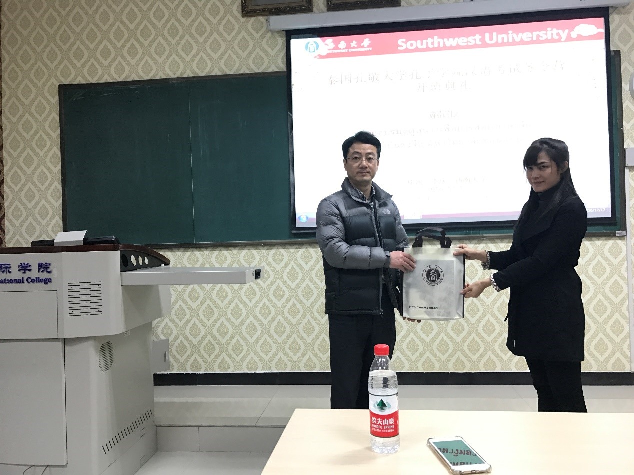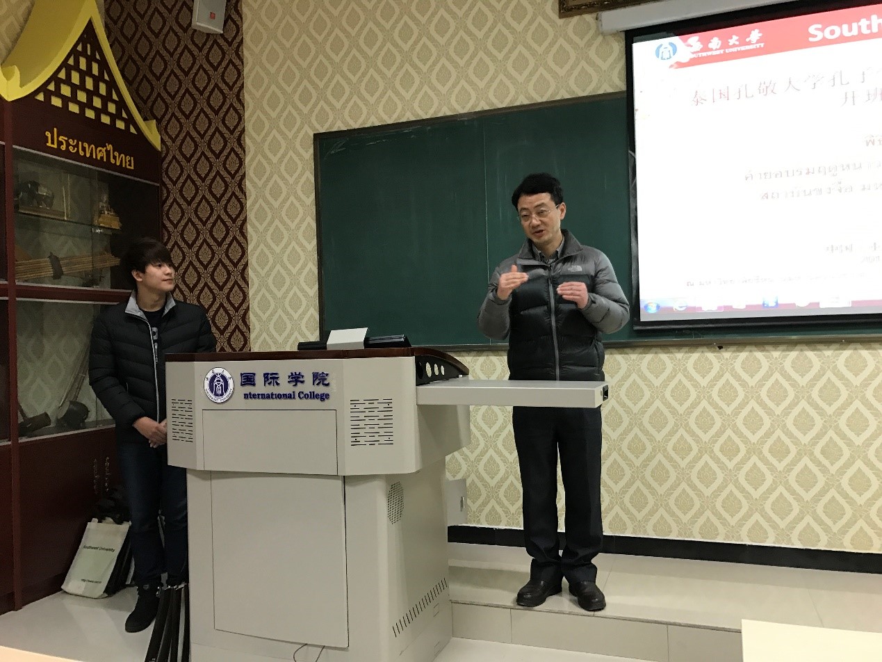 12月17日下午4:30,泰国孔敬大学孔子学院汉语考试冬令营开班典礼在我院紫云楼210教室顺利举行。来自泰国2所职业学校的4名领队教师、20名学生,孔敬大学孔子学院带队教师丰雅,以及伟的国际1946bv副院长李航、招生办公室主任代远鸿、项目负责人张波、泰国学生志愿者等30余人参加了此次开班典礼。