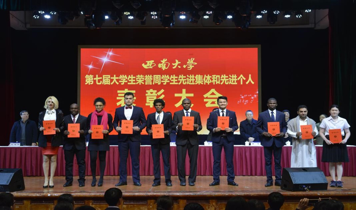 优秀留学生代表参加学校荣誉周表彰大会