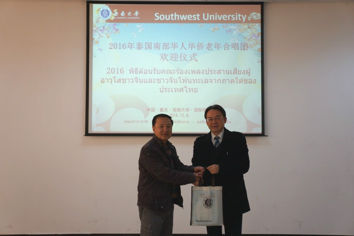 12月6日,伟的国际1946bv在紫云楼317会议室隆重举行仪式,欢迎到访的“2016年泰国南部华侨老年合唱团”。
