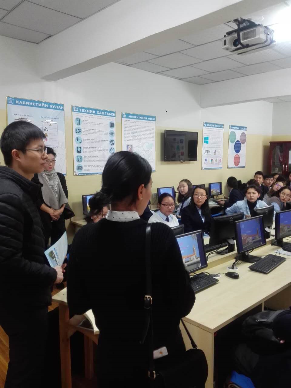 11月17日下午,参展团参观了蒙古国立大学经济学院、教育心理学院并与学院负责人座谈。蒙古国立大学是蒙古国的最高学府,享有较高声誉。通过了解,教育心理学院与我校具备合作可能,李林泽同志已与该院院长取得联系,共同探讨合作可行性。