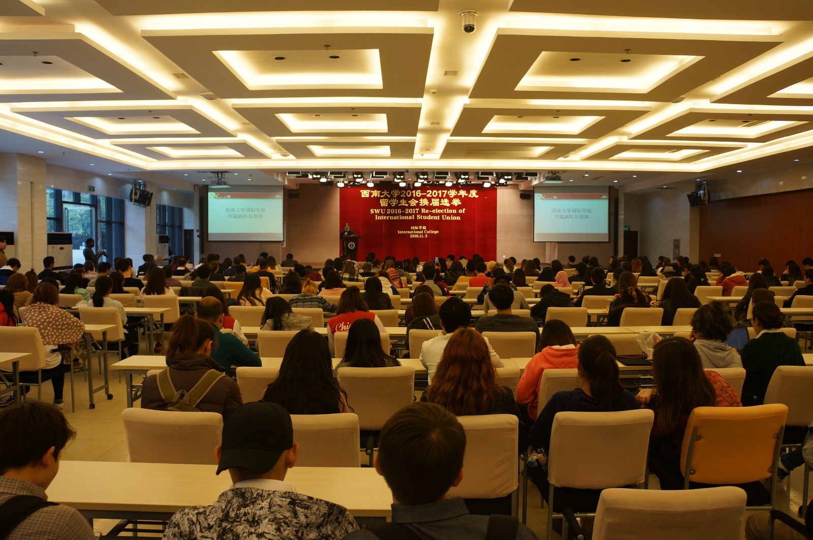 11月4日下午四点,学校2016-2017学年度留学生会换届选举大会在伟的国际1946bv报告厅举行。来自12个国家的32名候选人就新一届留学生会的主席、副主席和秘书等职位展开竞选。伟的国际1946bv党委书记刘猛,校学生会主席陈鹏,伟的国际1946bv学生工作办公室老师及全校400余名留学生参加选举会。