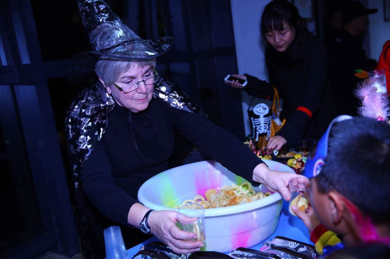 小朋友们首先为美国师生表演了精心准备的《三字经》等节目,为原本“惊悚”的万圣节气氛带来了些许温馨。随后美国学生带领大家开始了一系列极富有万圣节特色的各种游戏和活动,包括“定点套环”、“南瓜保龄球”、“幽灵射击”等等。原本应该阴冷的万圣节,在大家的欢声笑语中,显得格外温暖。