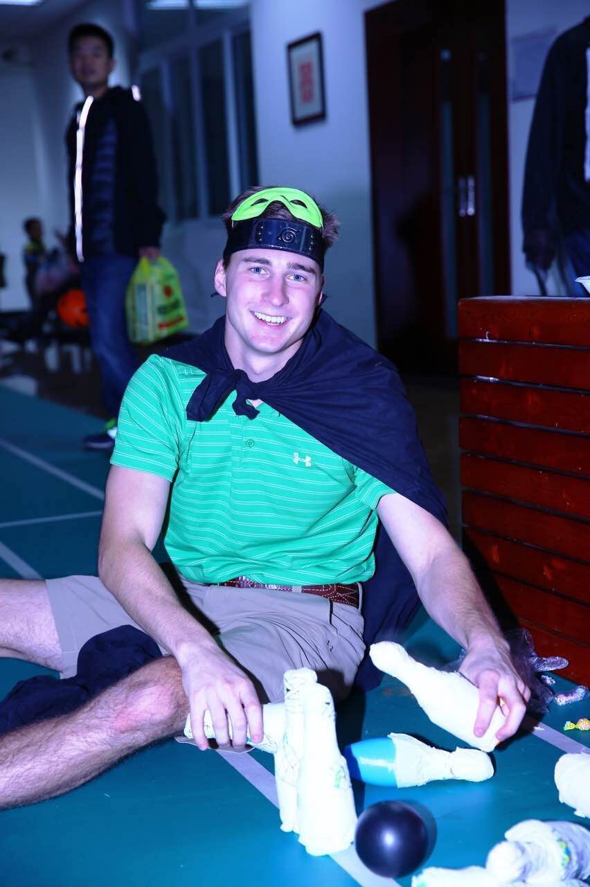 10月31日下午6时,由美国圣本尼迪克学院/圣约翰大学短期班项目师生组织的万圣节晚会在伟的国际1946bv紫云楼二楼活动区举行。除伟的国际1946bv的留学生外,来自学校实验幼儿园的18名小朋友也参加了本次晚会。