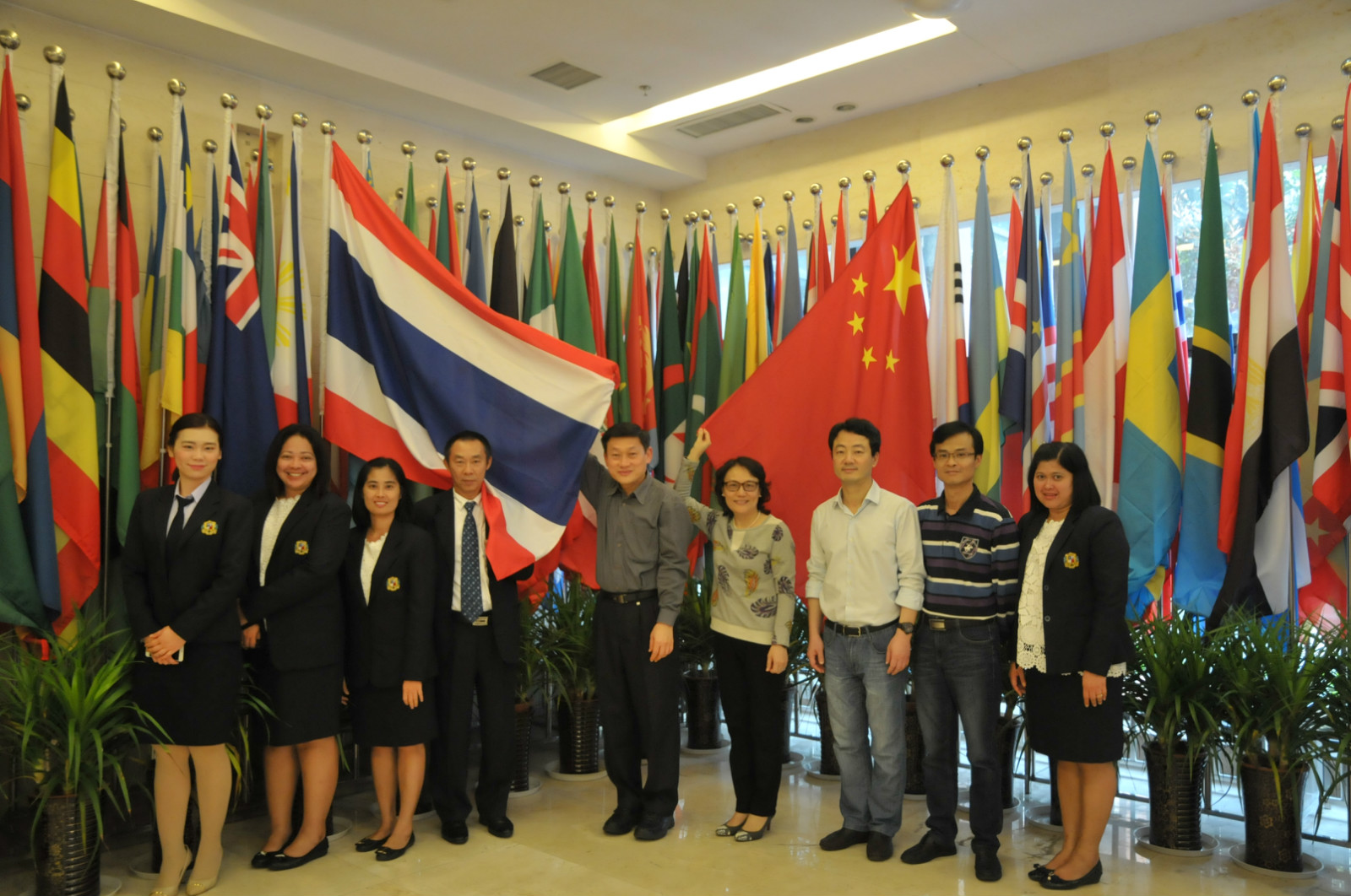会谈结束后,来访的泰国客人一行还参观了伟的国际1946bv大楼紫云楼,并参观了校园。代表团对优美的校园环境赞不绝口,对伟的国际1946bv的教学设施及留学生的学习与生活条件给予了高度评价。