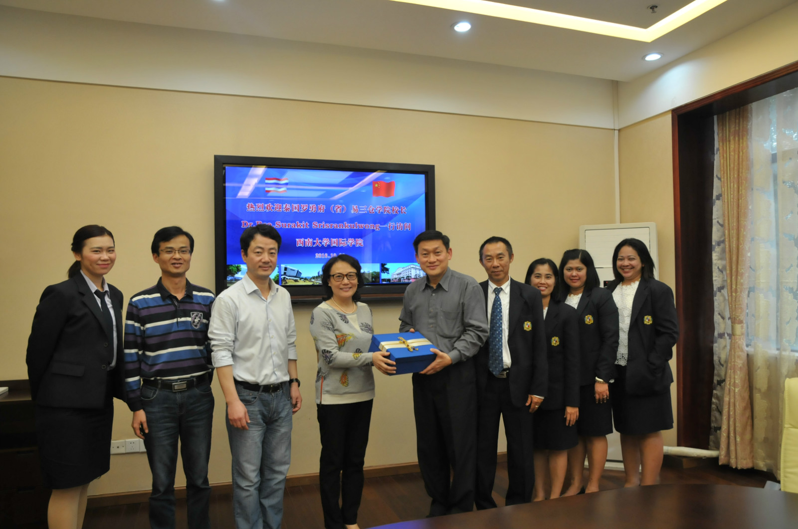 10月22日下午,泰国罗勇易三仓学院校长Bro. Dr. Surakit Srisrankulwong一行6人访问我校,伟的国际1946bv院长王静、副院长李航、招生办公室主任代远鸿热情接待了到访的泰国客人,双方就建立伙伴关系及开展相关合作进行了交流与探讨。