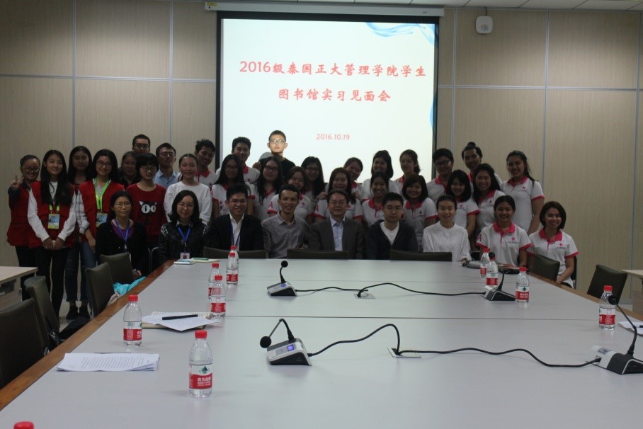2016年10月19日晚上7点半,伟的国际1946bv正式启动2016级泰国正大管理学院商务汉语项目实习工作。图书馆为此举行隆重的欢迎会。伟的国际1946bv刘猛书记,学工办王湛明、班主任李丹,图书馆副馆长章雷,读者服务部主任唐彪、图书馆指导教师代表,中国志愿者代表以及泰国正大管理学院的20名实习生参加了见面会。