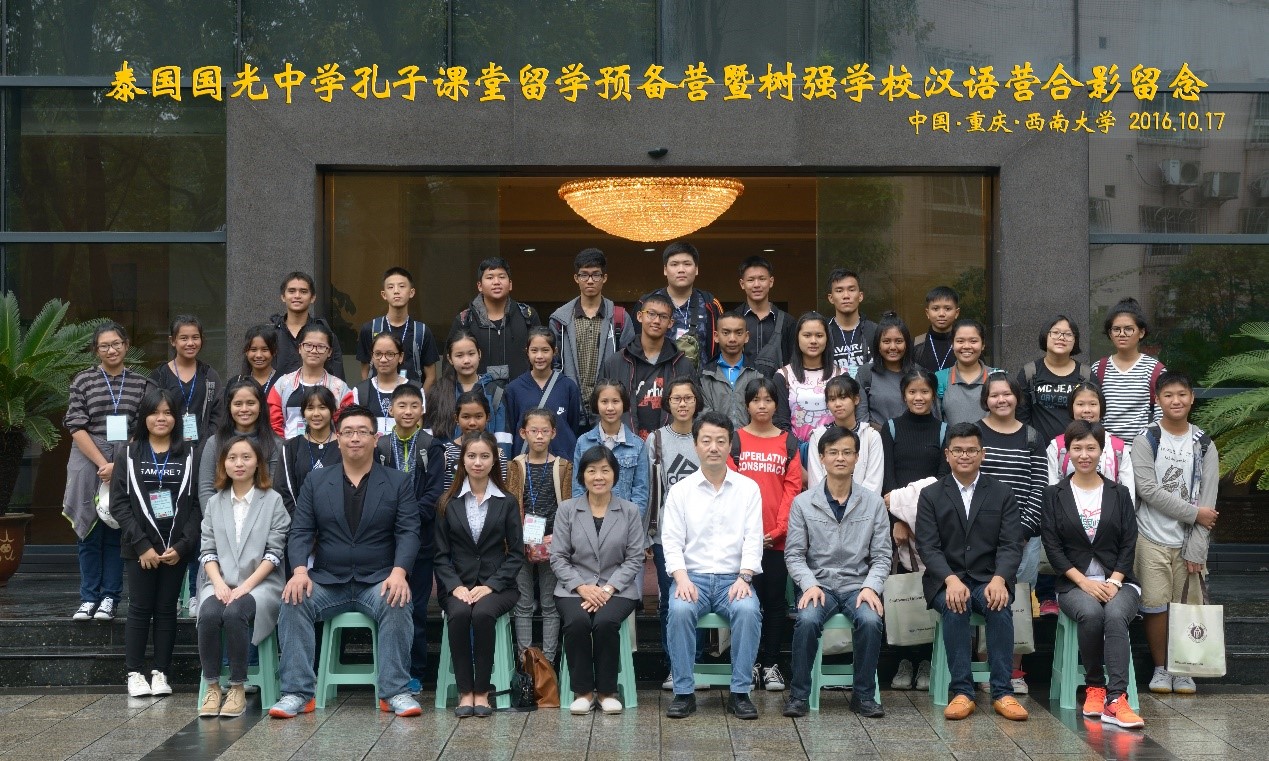 10月17日上午9点,泰国国光中学孔子课堂留学预备营暨树强学校汉语营开班典礼在我院紫云楼317教室顺利举行,来自泰国6所中学的36名中学生、6名领队教师、以及伟的国际1946bv副院长李航、招生办公室主任代远鸿、项目负责人张波、泰国学生志愿者等50余人参加了此次开班典礼。