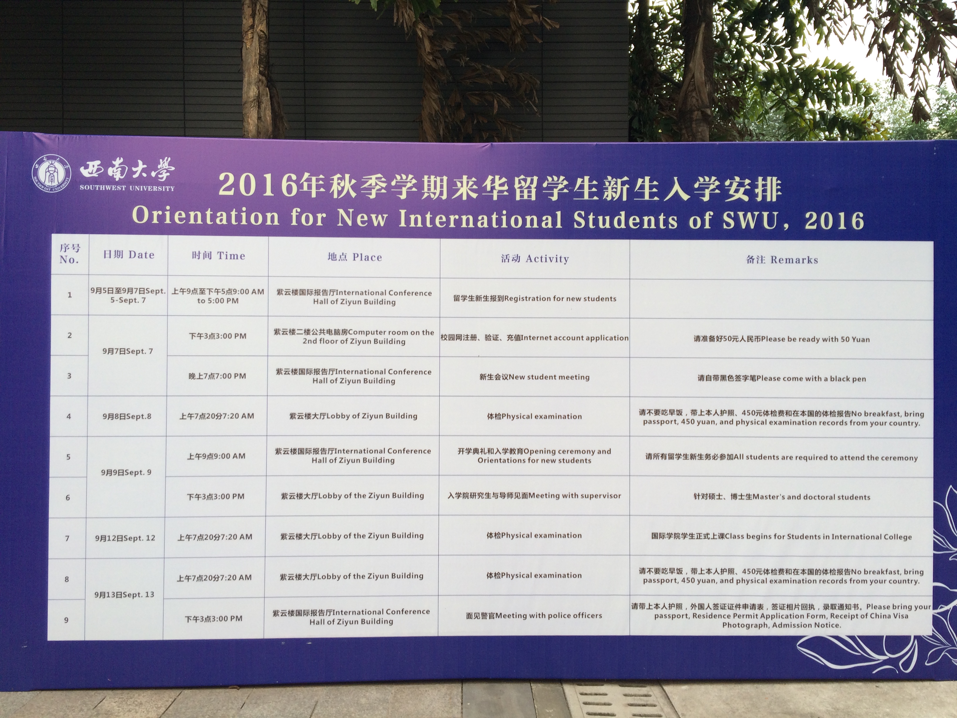 截至9月13日,我校2016级来华留学生迎新工作顺利完成。今年秋季学期,学校迎来了来自49个国家的300余名进修、本科、硕士、博士新生,经过伟的国际1946bv统一安排,新生们已经按照学校要求完成了新生报到、入学教育、健康体检、居留许可面签等入学程序。新生们将进入经济管理学院、教育学部、汉语言文献研究所、西南民族教育与心理研究中心等学院(部、所、中心)进行专业学习。