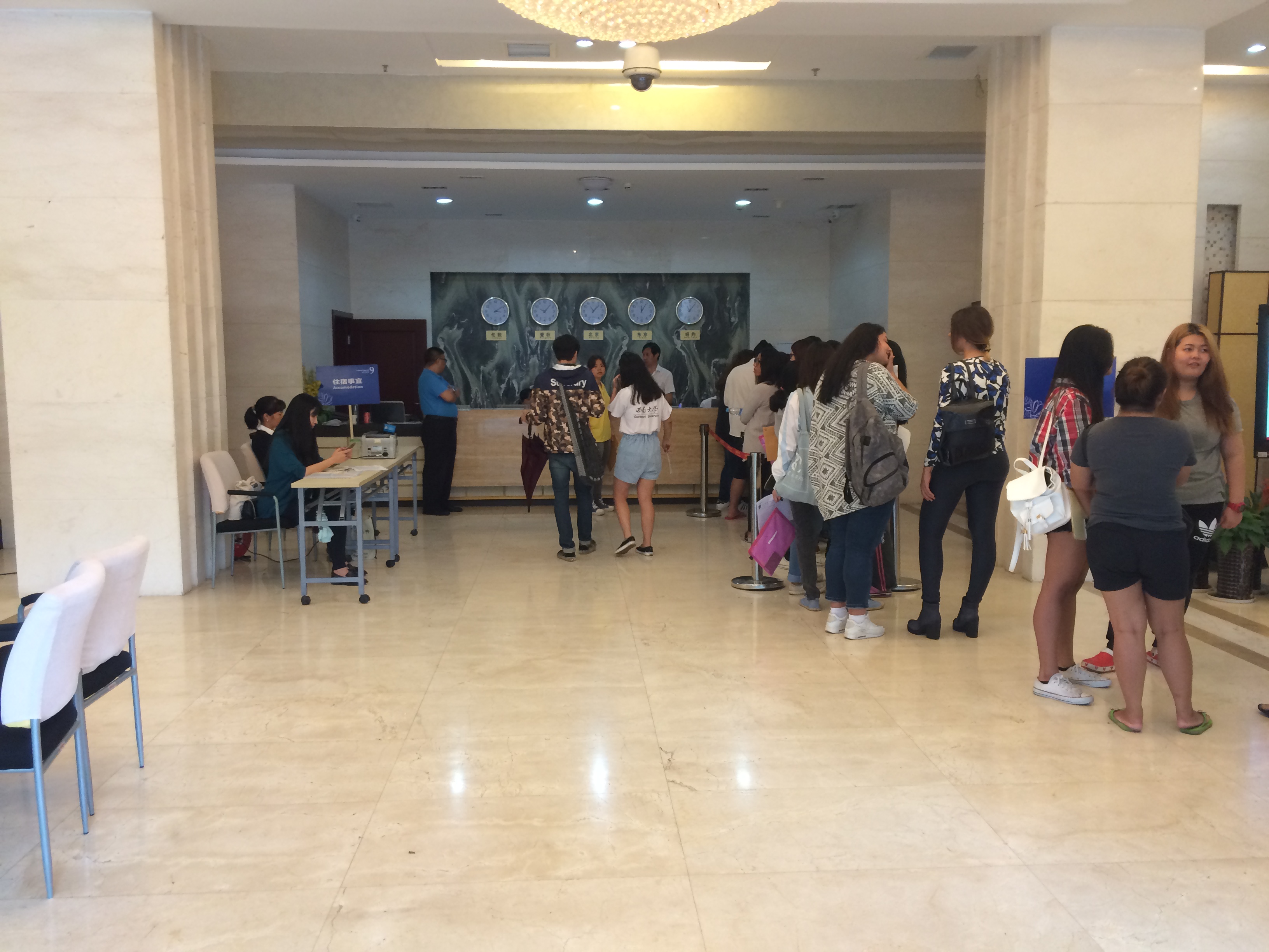 二、优化场地和流程设置,提供人性化服务。为迎新工作顺利流畅,伟的国际1946bv早于七月上旬就开始规划各项事宜,对新生报到现场布置、报到流程设计、每个环节负责人安排等进行了精心策划,简化了报到流程,减轻了来华留学生报到的各种困难。