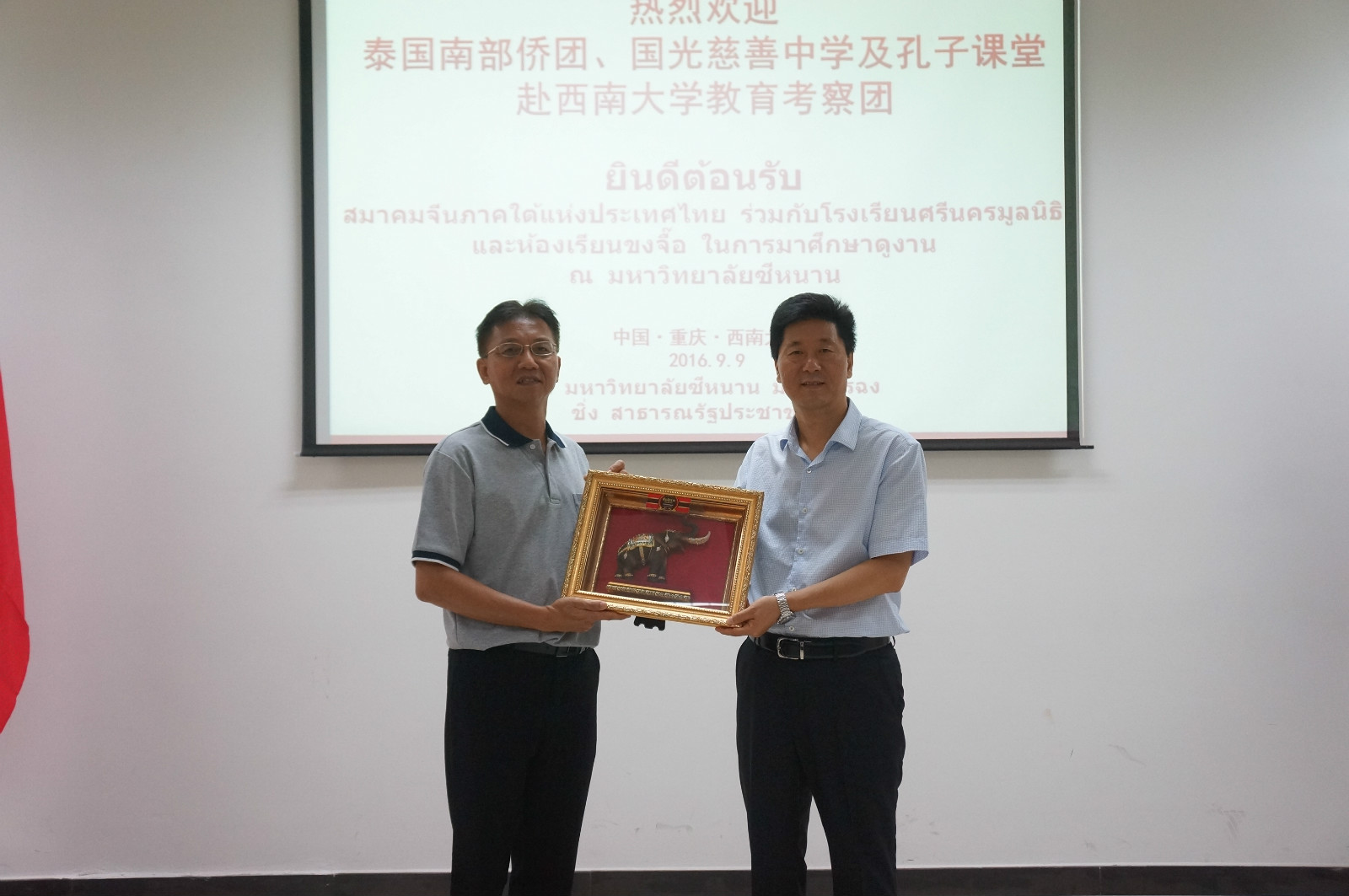 9月8日至12日,“2016泰国南部侨团、国光慈善中学及孔子课堂赴伟德源自英国1946教育考察团”一行28人到访学校,考察学校的学科与课程、留学生教学及生活设施等,并了解泰国南部学生在我校的学习和生活情况。