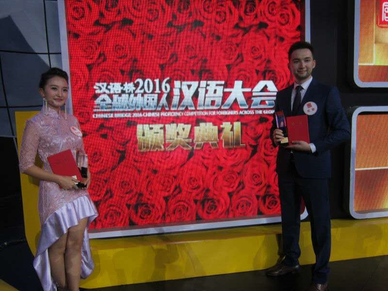 由国家汉办/孔子学院总部和中央电视台联合主办、中央电视台中文国际频道(CCTV–4)承办的“汉语桥·2016全球外国人汉语大会”颁奖晚会于7月23日隆重举行,我校哈萨克斯坦籍留学生MAKHSUTULY KAISAR(凯撒)荣获本次汉语大会故事会单项奖,蒙古籍留学生KHISHIGDELGER LKHAGVADORJ(贺西格)获知识会单项奖,此外,他们所在的成都赛区代表队还荣获本次汉语大会团体金奖。