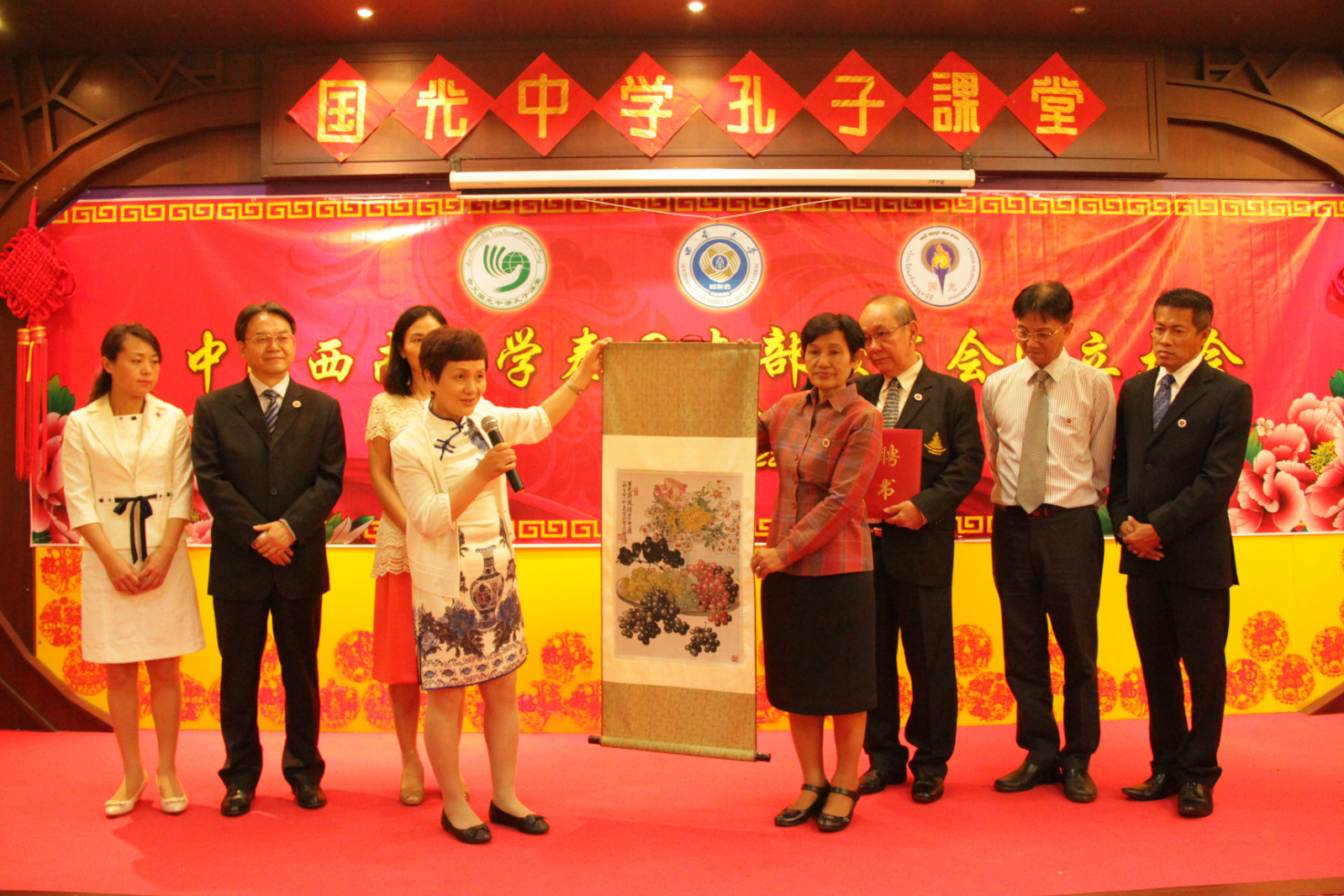 封云副秘书长为校友会授牌并为谢海秋会长颁发了聘书。林萍代表校友总会(筹)和泰国南部校友会相互赠送了纪念礼物。
