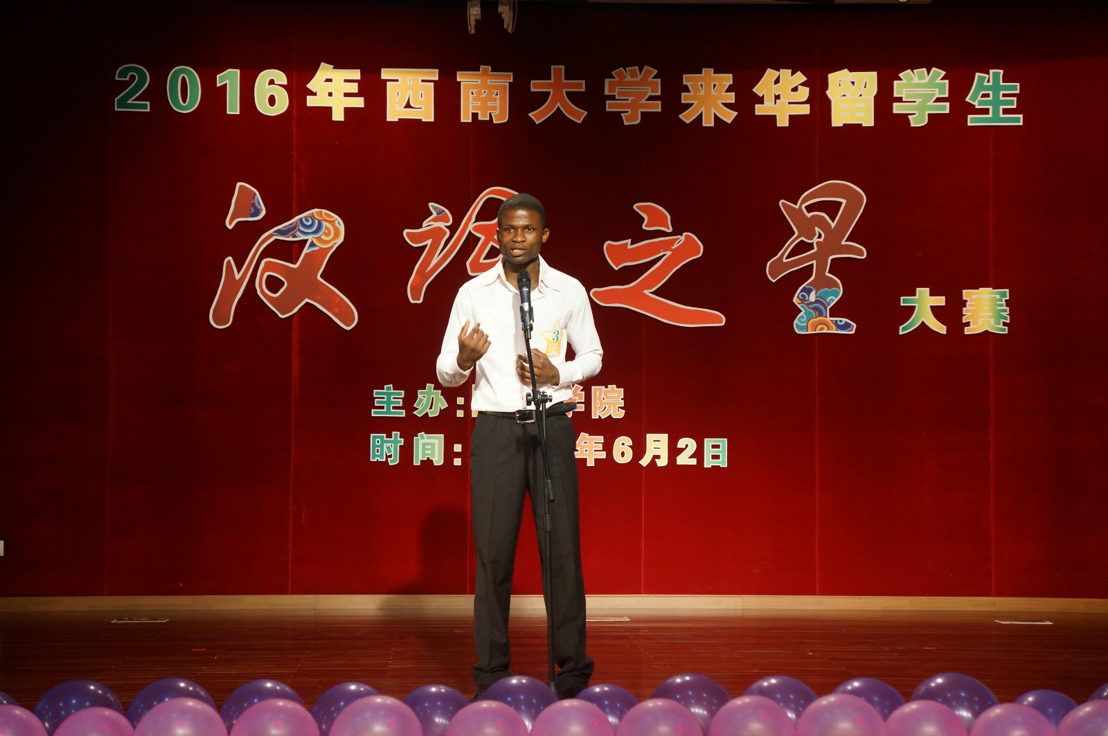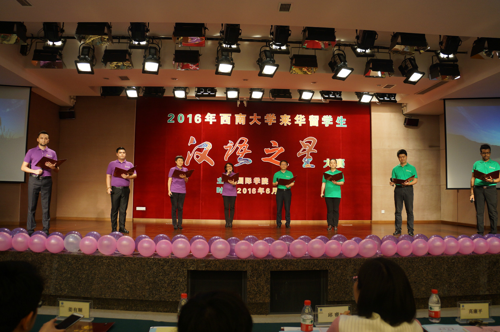6月2日晚7时,2016年伟德源自英国1946来华留学生“汉语之星”大赛决赛在伟的国际1946bv学术报告厅举行。来自泰国、哈萨克斯坦、越南、日本、几内亚比绍、佛得角、刚果(布)等9个国家的11名选手经过层层选拔脱颖而出,展开了初级、中级、高级等3个组别“汉语之星”的终极角逐。
