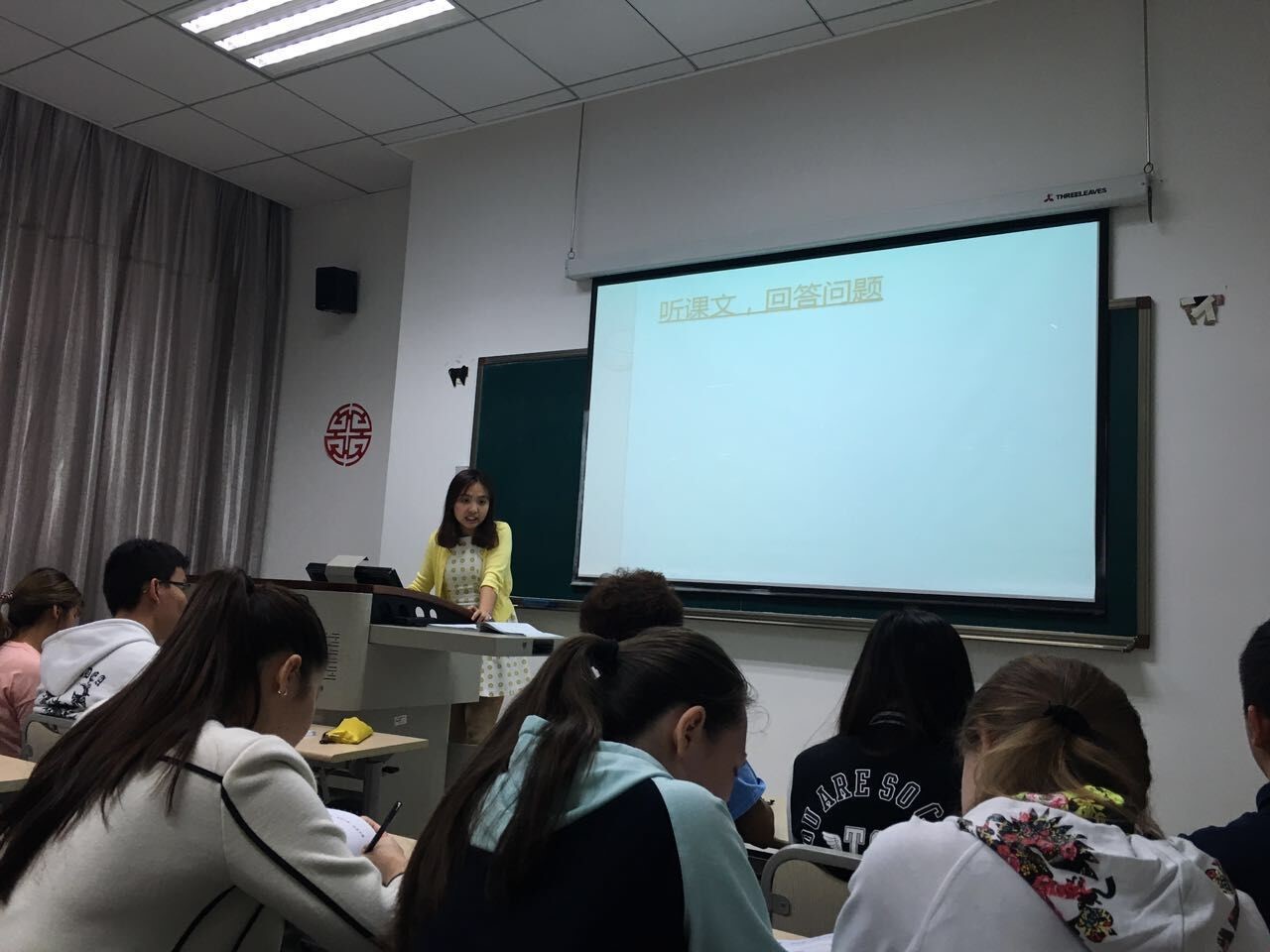 本次汇报课的主讲教师黄琰给大家展示了一堂生动、有趣的口语课。她采用情景法和图片法,引导学生学习和练习语言知识点,利用一问一答的方法带领学生学习课文,最后通过对话练习的方式帮助学生巩固课文内容和知识点。