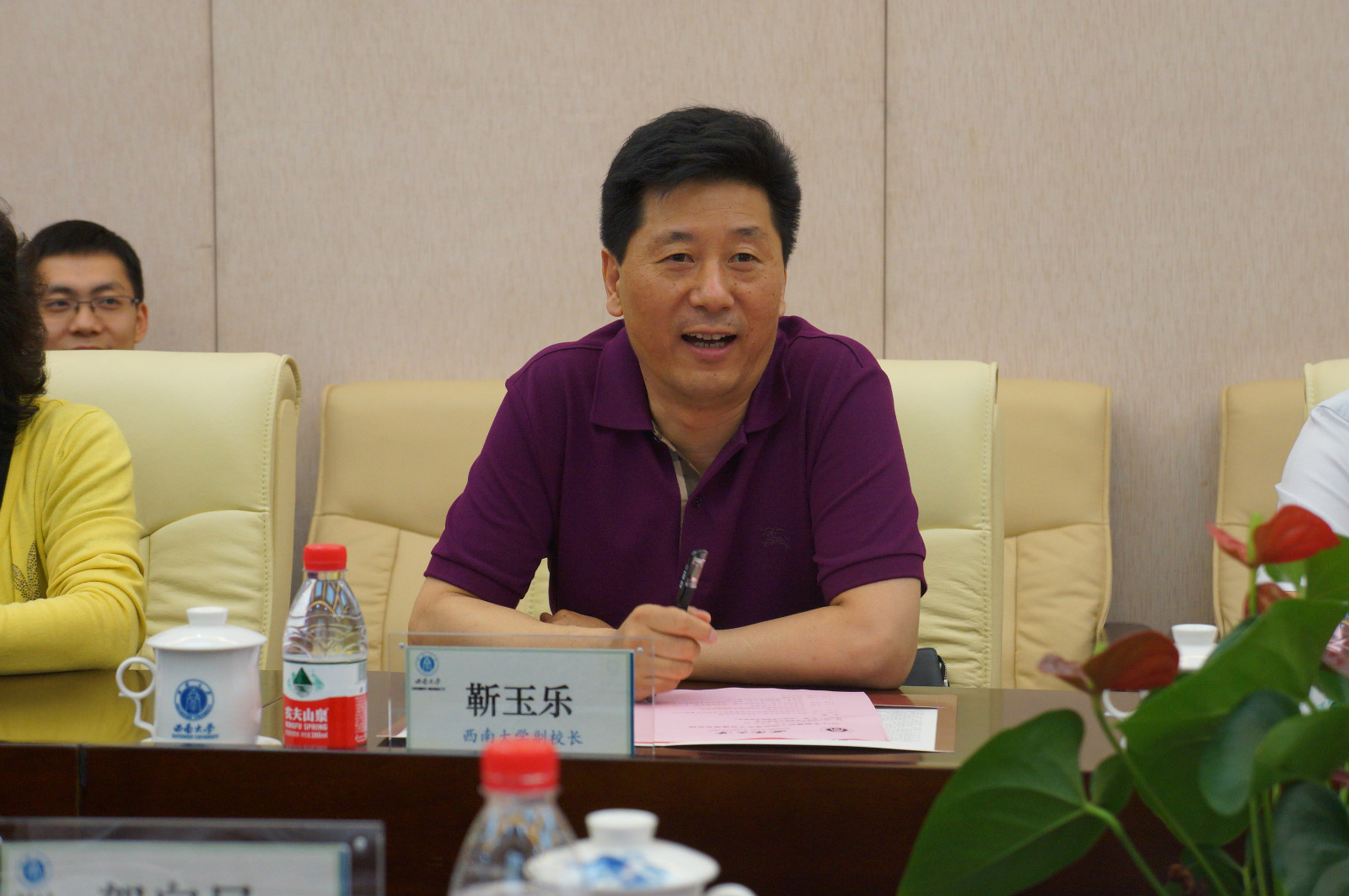 靳玉乐副校长代表学校致欢迎词。他首先对部属师大各位代表的到来表示热烈欢迎。他向与会人员介绍了学校百年校庆,国际合作与交流、留学生培养,以及重庆的人文和社会发展等情况。