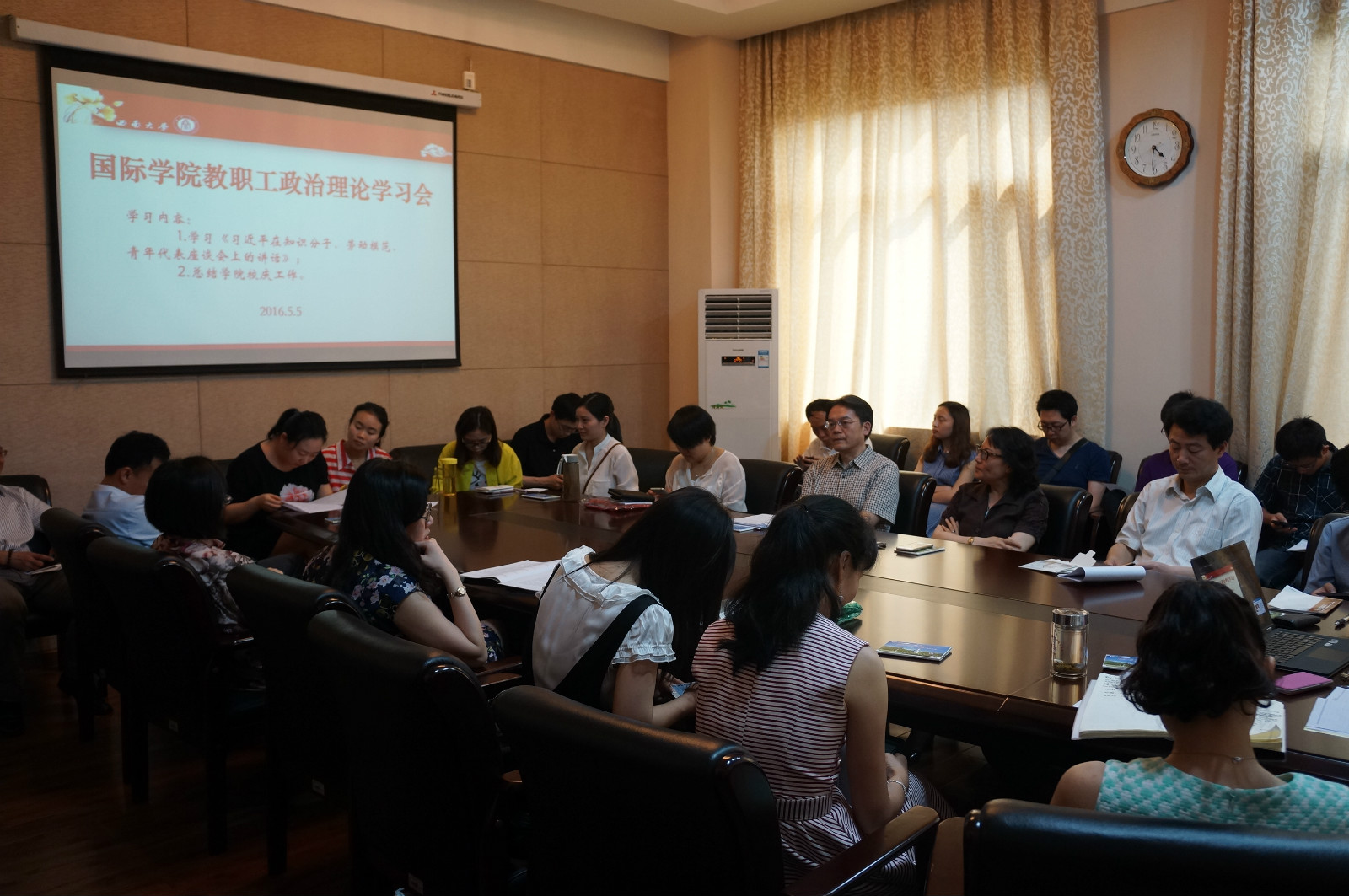 另外,刘猛书记还对学院近期的招生、学生、汉教系以及办公室工作做了通报。王静院长及李航副院长就学院其他事务做了补充说明。