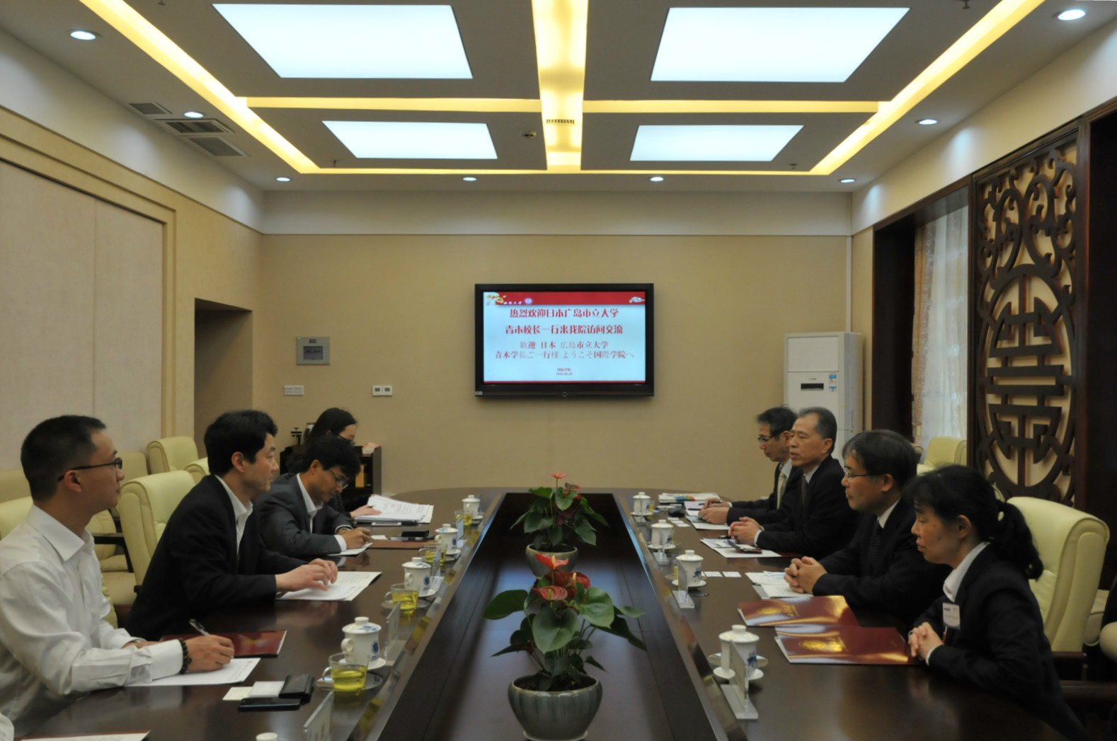 2016年4月18日下午,日本广岛市立大学校长青木信之、国际交流推进处处长松本良德、国际学部栾竹民教授和饭岛典子副教授一行4人访问伟的国际1946bv,李航副院长热情地接待客人并就两校合作事宜开展座谈交流。