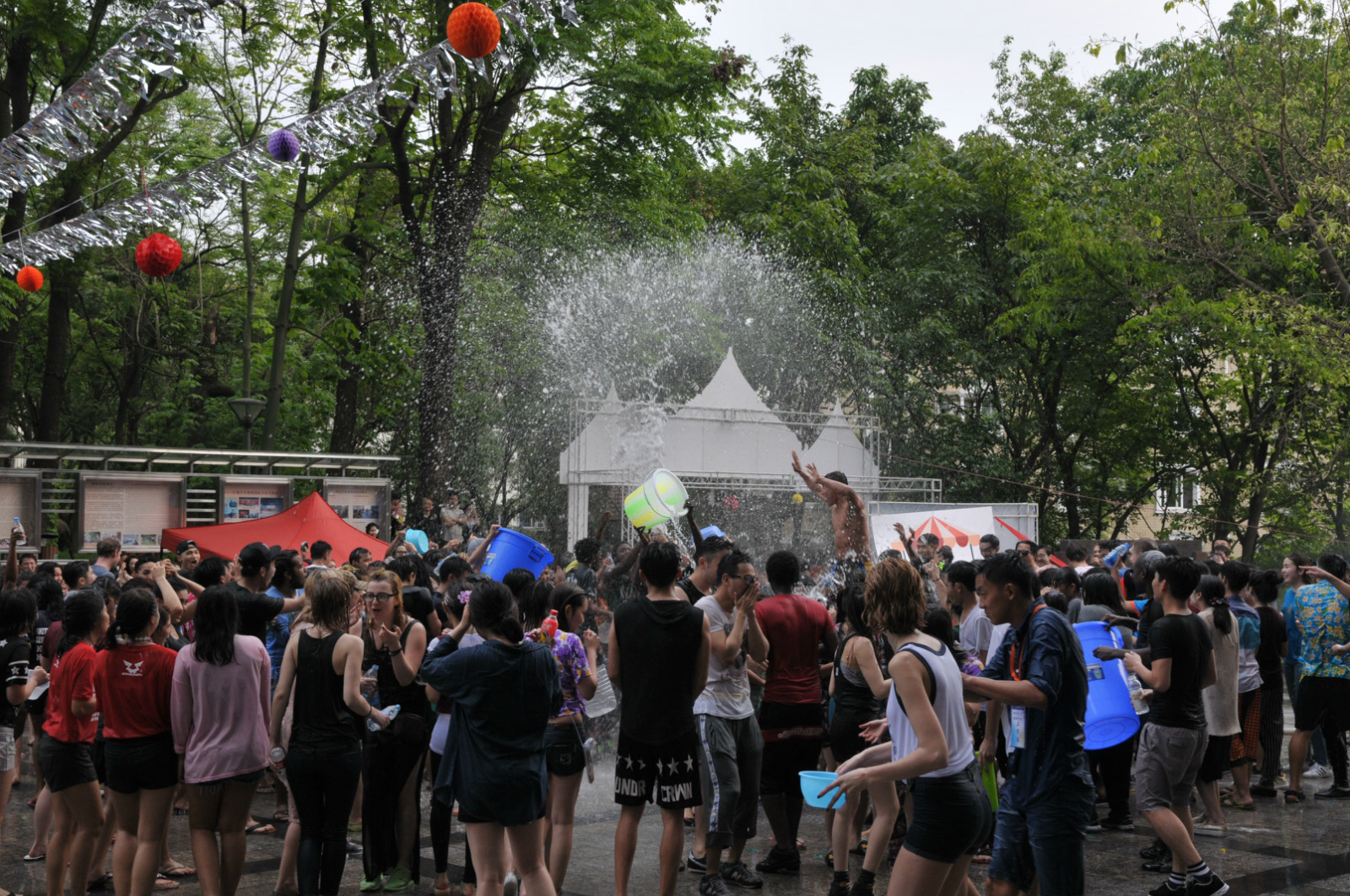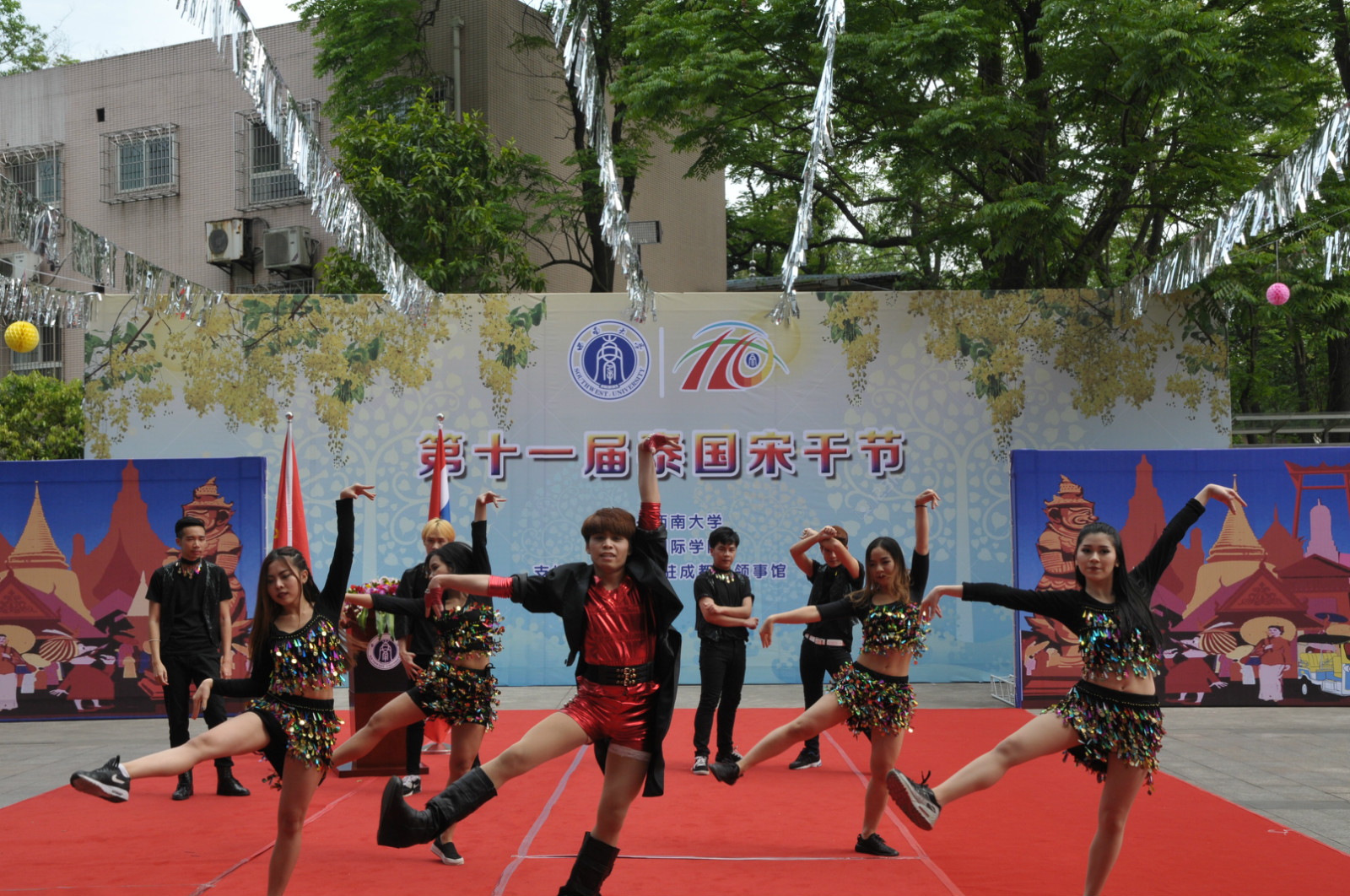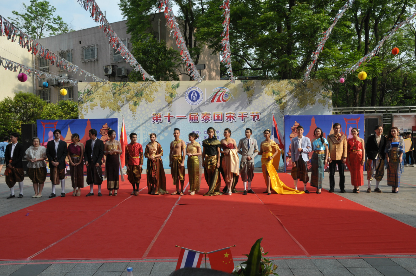 在身着传统泰式裙袍的泰国礼仪引导下,现场嘉宾进行了神圣庄严的浴佛仪式。仪式完毕后,5名来自各学院的泰国留学生精心准备的歌舞节目引发了全场热烈掌声,而由来自泰国,韩国,哈萨克斯坦等国的留学生参与的“宋干先生”与“宋干小姐”的评选更是将气氛推至高潮。最后,在激情澎湃的音乐中,全场师生尽情泼水,互道祝福,享受着传统的泰历新年带来的愉悦。