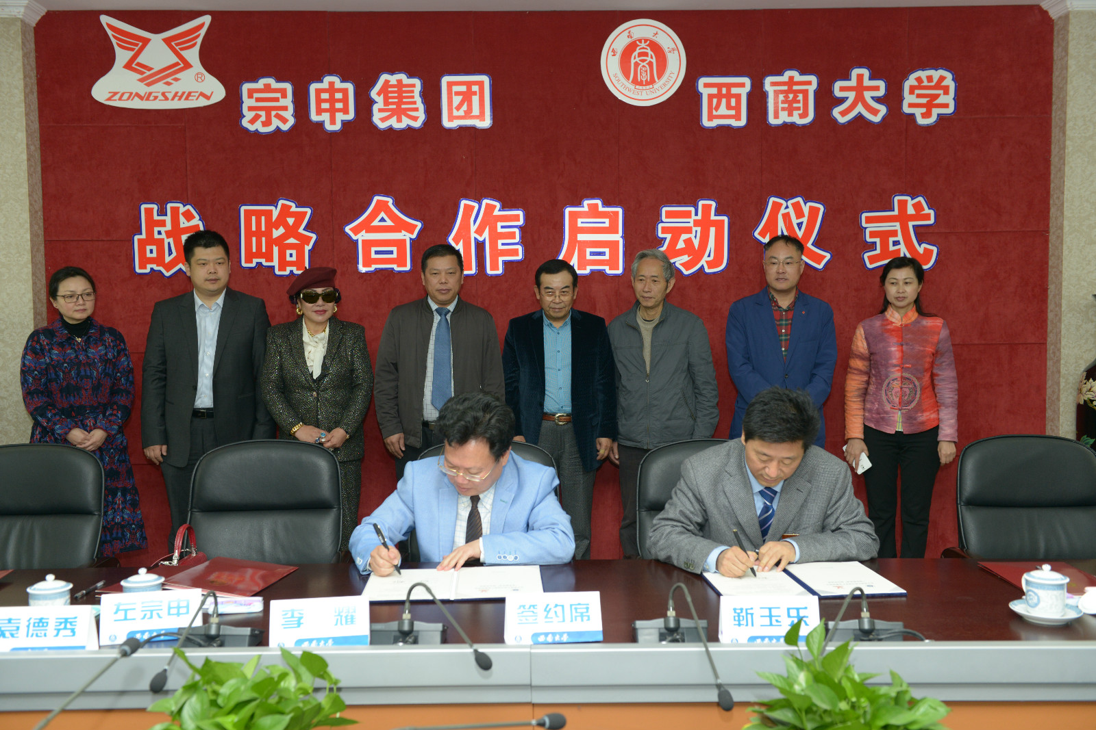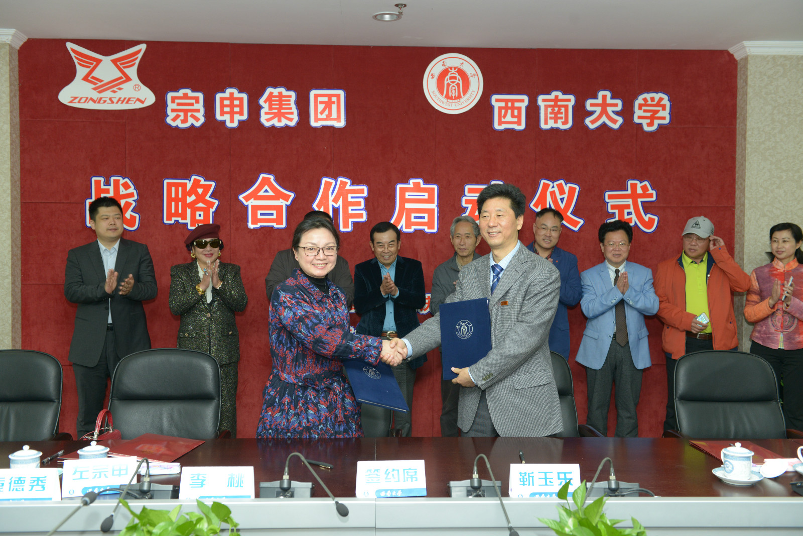 3月31日,学校与宗申集团战略合作签约仪式在行署楼举行。合作内容包括宗申集团在我校设立来华留学生“宗申奖学金”,赞助即将举行的第十届国际文化节等。宗申产业集团有限公司董事长兼总裁左宗申,常务副总裁、首席投资官李耀,副总裁李桃,集团总监袁德秀,重庆宗申事业发展有限公司董事长陈亿和我校校长张卫国、副校长靳玉乐出席仪式。